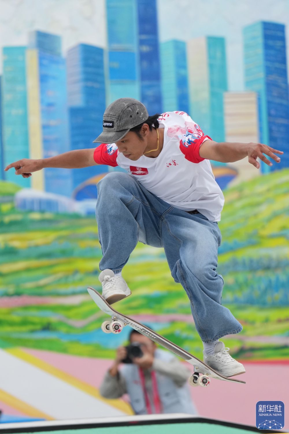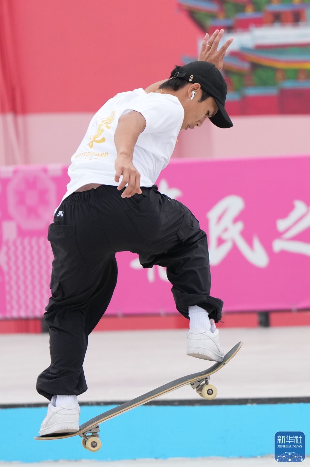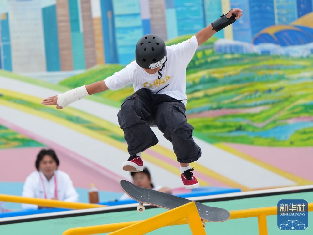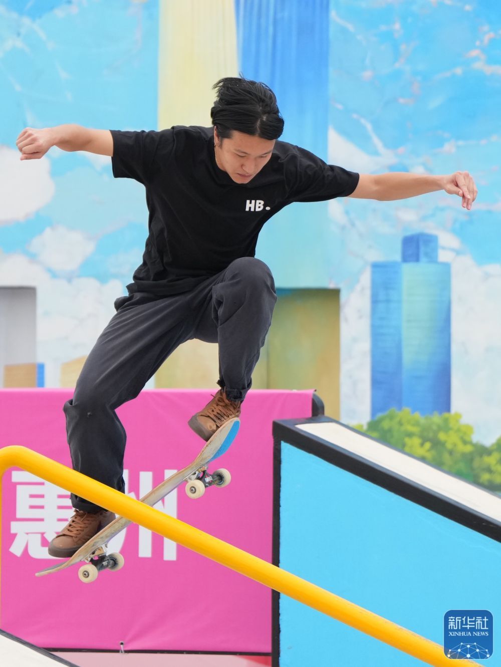 11月11日,第十五屆全國運(yùn)動會滑板項(xiàng)目男子街式賽決賽在廣東惠州舉行。廣東隊(duì)選手潘家杰奪冠,北京隊(duì)選手王騰赫獲得亞軍,江蘇隊(duì)選手高群翔獲得季軍。