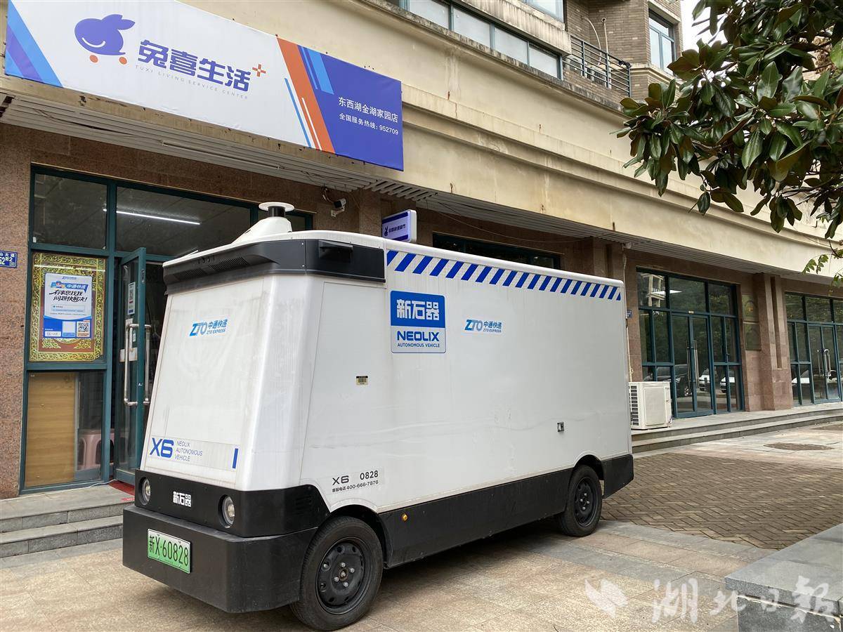 11月11日,在武漢市東西湖區金湖家園小區,中通無人快遞車正在派送快遞。(記者劉天縱攝)