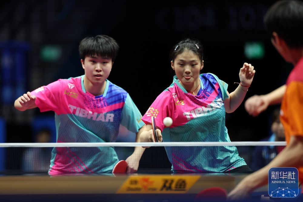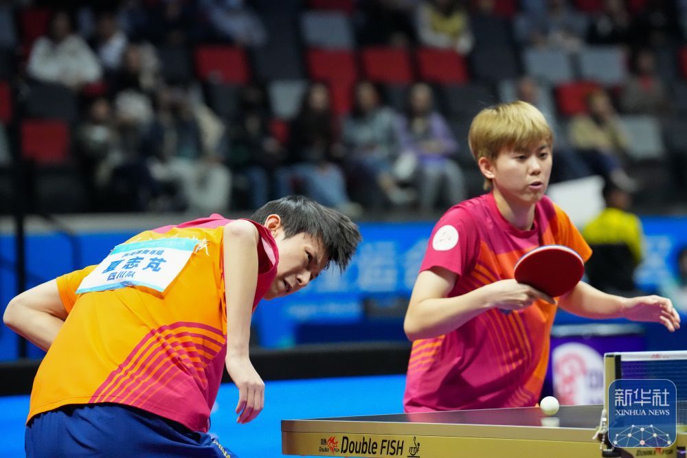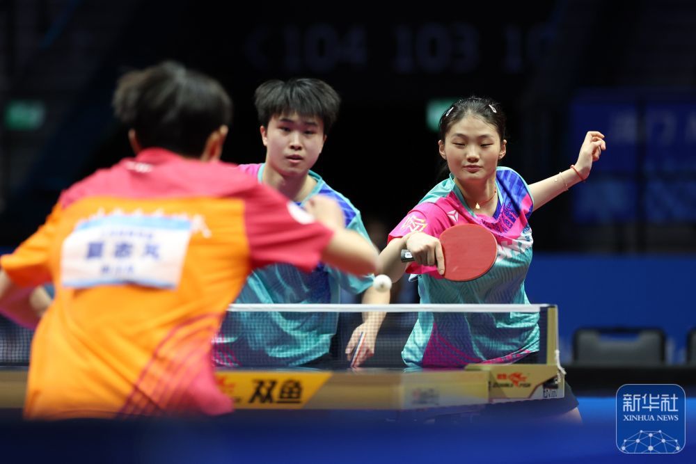 ↑ 四川隊組合夏志芃(左一)/高雨欣(右二)在比賽中回球。 新華社記者 梁旭 攝