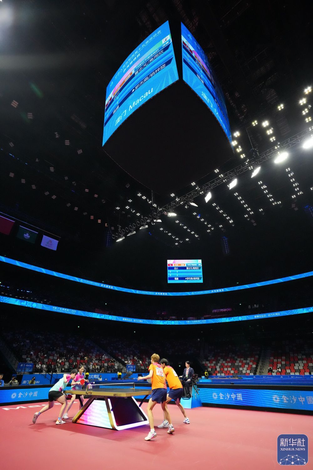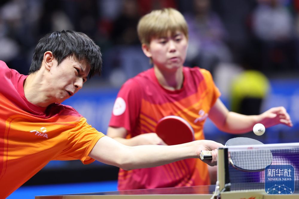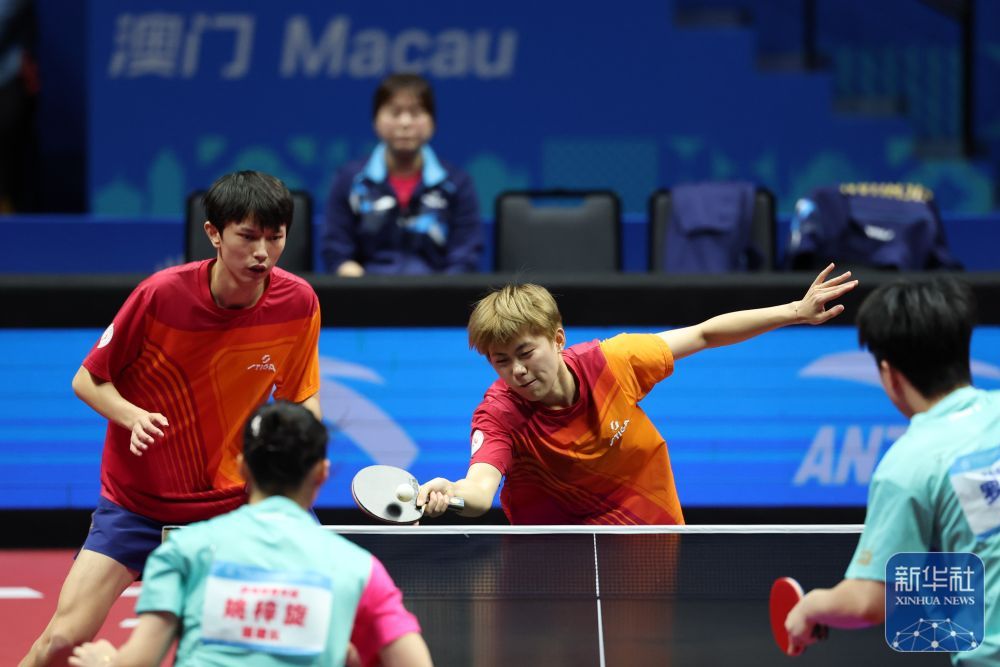 ↑ 福建隊組合羅杰乘/姚梓旋(右二)在比賽中回球。 新華社記者 梁旭 攝