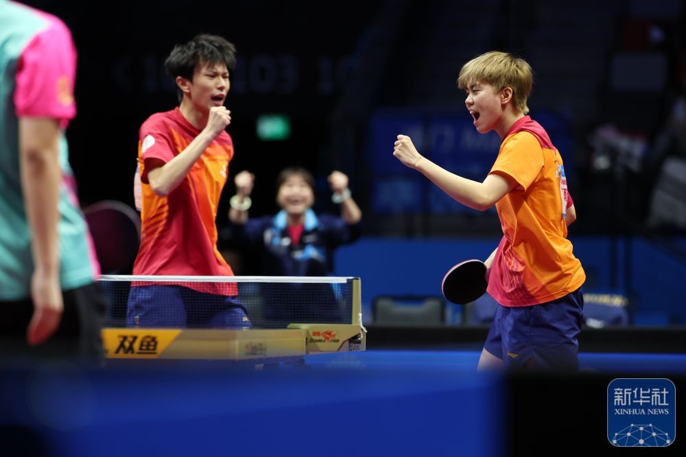 ↑ 四川隊組合夏志芃/高雨欣(右)在比賽中慶祝得分。 新華社記者 梁旭 攝