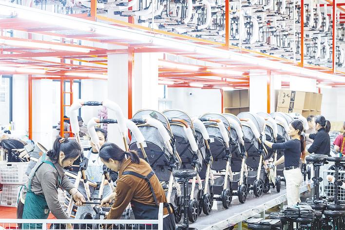 11月5日,位于漢川城隍鎮(zhèn)的厚谷陽光童車生產(chǎn)線上一派繁忙,該公司今年已生產(chǎn)高景觀嬰兒車、輕便小推車等15萬輛(套),銷往全球。今年上半年漢川童車出口金額達3274萬美元,同比增長三成多。 (湖北日報全媒記者 倪娜 通訊員 尹青 攝)