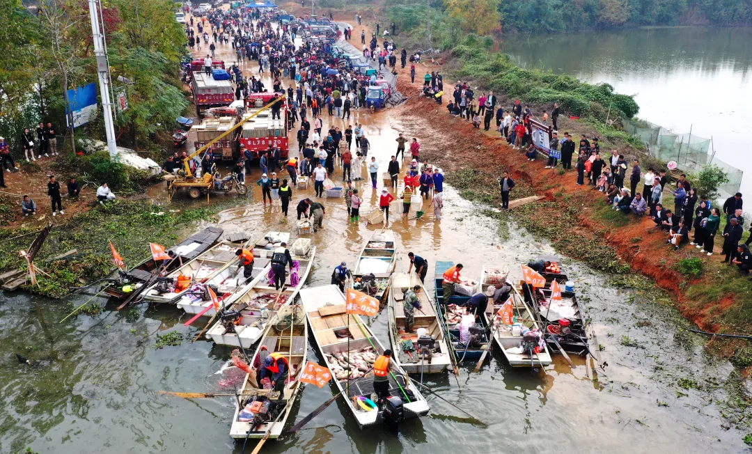 金秋的斧頭湖,波光粼粼。在渡普鎮斧頭湖畔,漁民們撒下今秋第一網,肥美的白鰱、花鰱、草魚在網中歡騰跳躍。