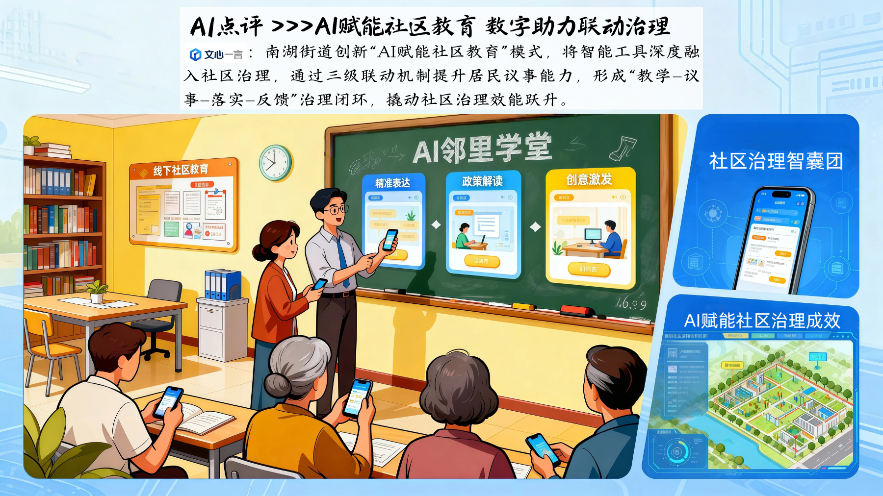 據了解,面對居民參與社區治理“有心無力、有想法難表達”的普遍困境,武漢市武昌區南湖街道依托11年深耕形成的社區教育堅實基礎,創新踐行網上群眾路線。通過 “AI賦能社區教育”特色項目 ,將DeepSeek等智能工具教學系統融入公民素養教育,把線下高人氣轉化為線上高效能,有效破解民主協商“最后一米”的梗阻。項目運行半年來,推動居民提出高質量建議百余條,構建起 “線下發現需求、線上賦能個體、社區精準響應” 的閉環治理新模式。