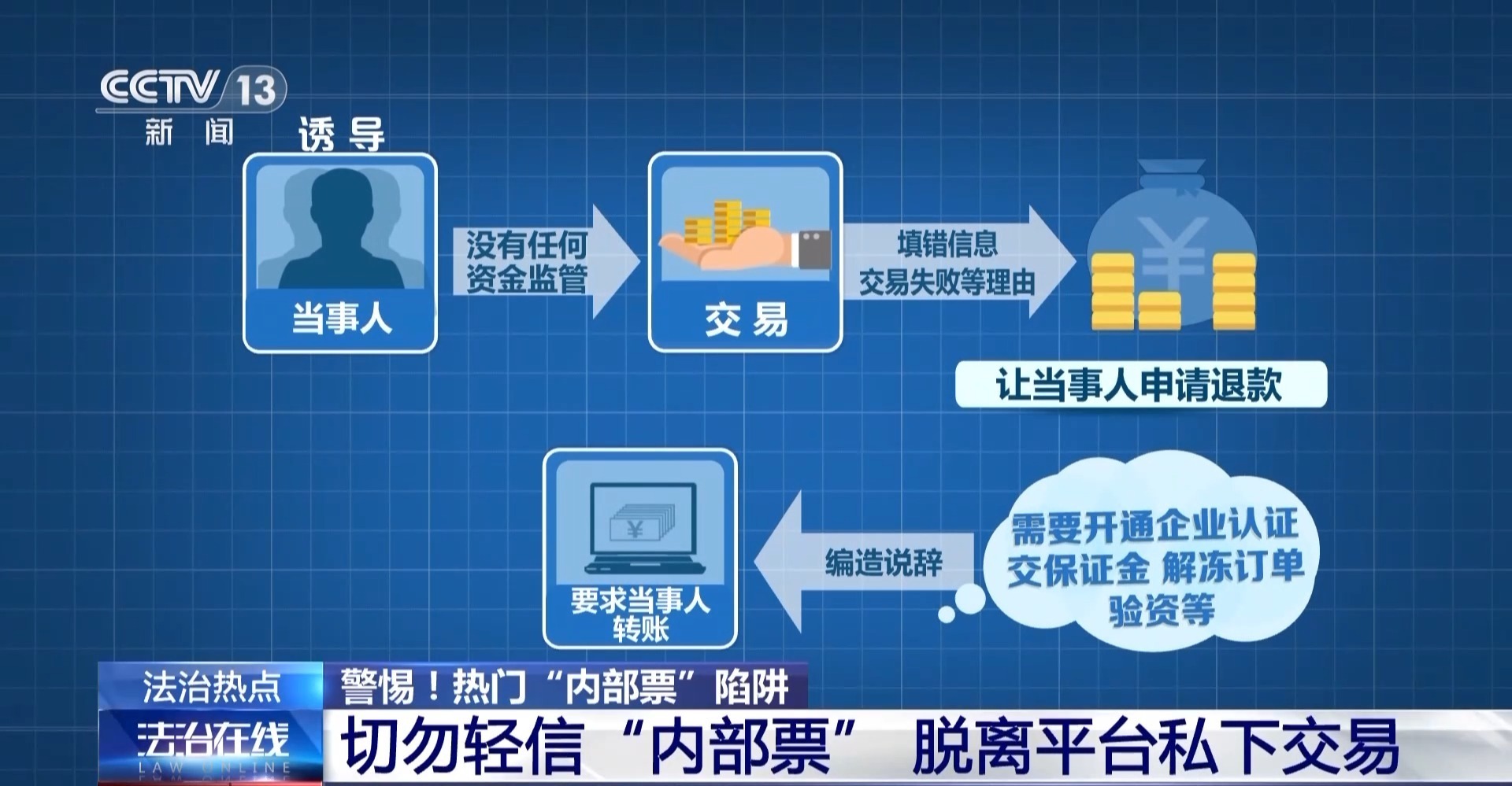 北京市公安局刑偵總隊民警 黃碩:第一種是特別直白明了的,誘導(dǎo)你去付演出門票的錢款,付完款以后,對方就會把你拉黑,然后卷款消失。第二種整個的詐騙環(huán)節(jié)就會相對比較復(fù)雜,首先他們會在閑魚這種平臺進行引流,引流其實詐騙分子設(shè)下的一個誘餌,他們會以內(nèi)部渠道低價票的方式去投放信息。當你找到他們以后,他們會首先跟你說去別的平臺進行溝通。