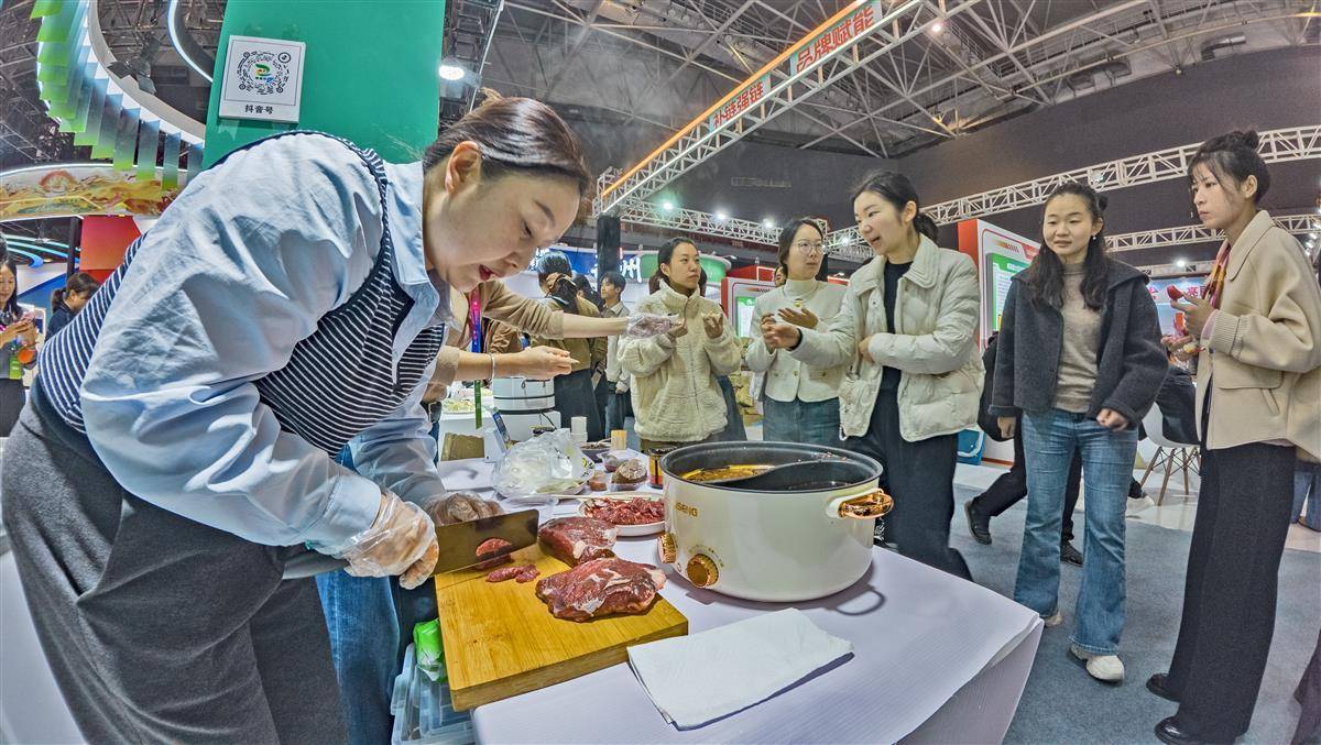 11月12日,2025全國農商互聯暨鄉村振興產銷對接活動”在宜昌奧體中心正式開幕。本次活動以“補鏈共鏈 品牌賦能 循環振興”為主題,為期兩天,將搭建起優質農產品產銷對接的核心平臺,助力鄉村振興發展。活動匯聚了政府部門、行業機構、生產企業與采購商等多方力量,形成產銷對接合力。活動現場規劃近1萬平方米展示區域,重點設置“尋味中國”地域特色精品區、湖北特色產業主題館及宜昌特色館三大核心展區,集中呈現鄉村振興戰略實施以來各地涌現的農產品新品牌、新成果。內蒙古的牛羊肉、陜西的蘋果、湖北的臍橙、云南的普洱茶等來自全國20余個省(區、市)的特色農產在此集中亮相,為采購商和消費者帶來一場“舌尖上的盛宴”。據了解,本次活動吸引400多家農產品生產加工企業參展,帶來上萬款極具地域特色的農副產品,涵蓋果蔬、肉食水產、米面糧油等基礎品類,更囊括各地老字號、區域公用品牌農特產品、國家地理標志產品及綠色有機食品等高品質選項。與此同時,全國300多家大型農產品批發市場、連鎖商超、電商平臺及工會集采單位的專業采購商已到場對接,精準搭建起“產地到餐桌”的直通橋梁。(湖北日報全媒記者 劉曙松 攝)