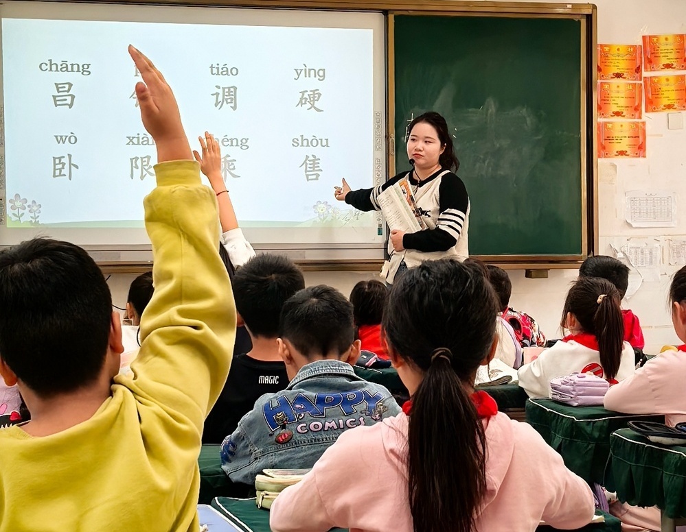 楊柳湖學(xué)校教師張思奇:學(xué)校創(chuàng)新推出了“拼音闖關(guān)大冒險”課間游戲,把聲母、韻母、整體認(rèn)讀音節(jié)設(shè)為“闖關(guān)的密碼”,學(xué)生用雙腳跳出拼音造型,配合聲調(diào)律動,在歡笑聲中就攻克了平翹舌音難點,他們通過跳躍、認(rèn)讀、組詞完成了知識的鞏固。一些以前比較內(nèi)向的孩子現(xiàn)在主動牽頭組隊去闖關(guān),孩子們在課堂上發(fā)言也積極了。