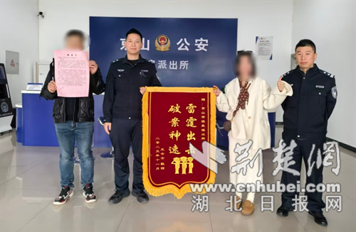 荊楚網(湖北日報網)訊(通訊員 楊怡 劉麗琰)“雷霆出擊 破案神速!”11月8日,市民王女士及其家人為京山市公安局溫泉派出所送來一面錦旗和一封情真意切的感謝信,向幫助其追回被盜電動車的民警表達由衷的感謝。