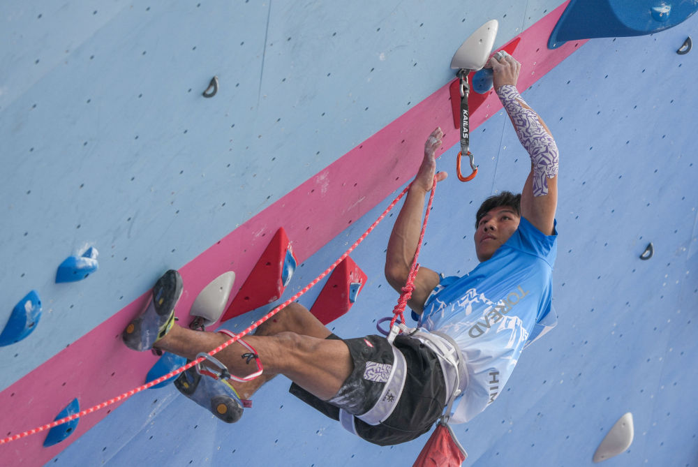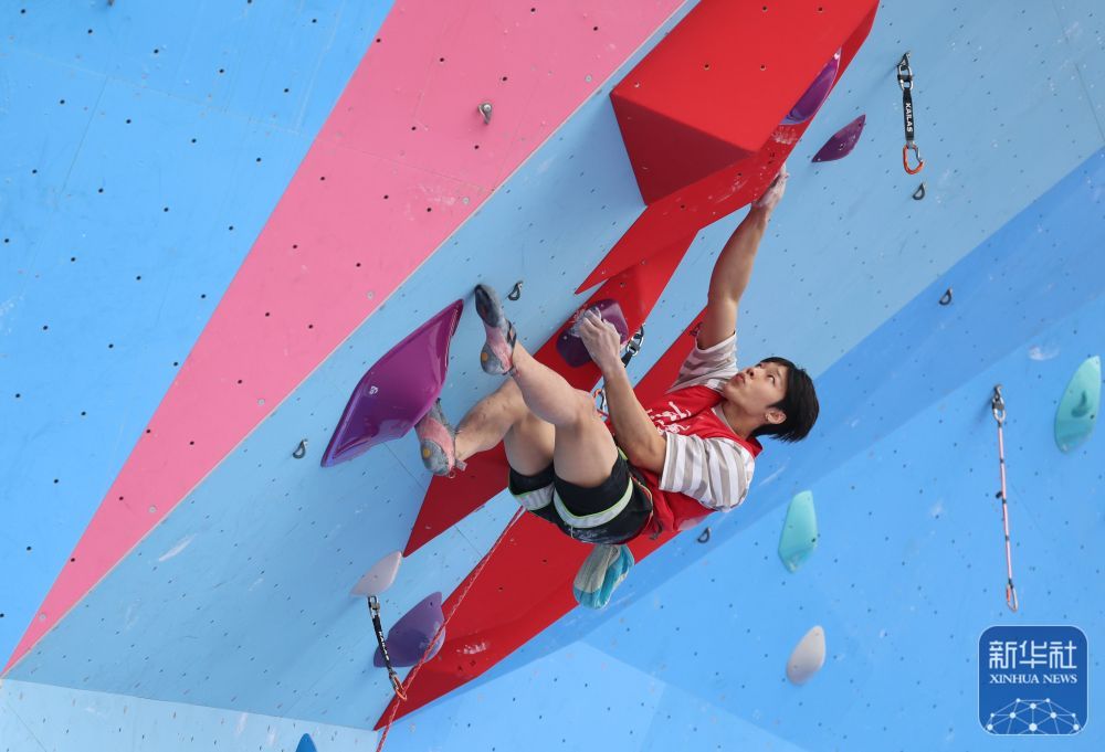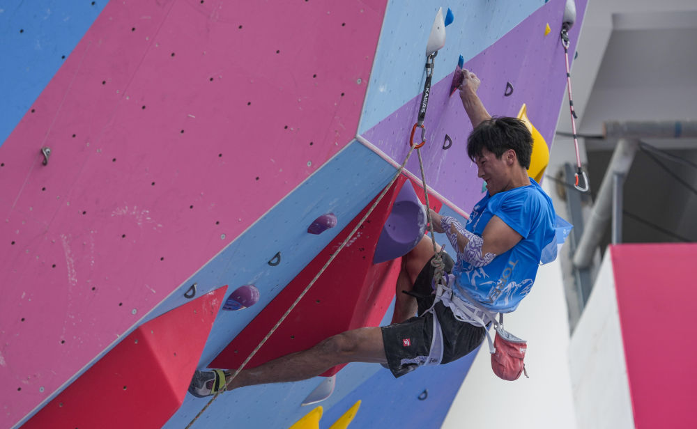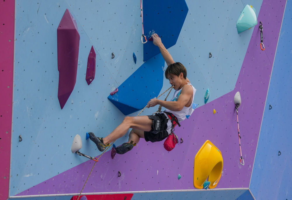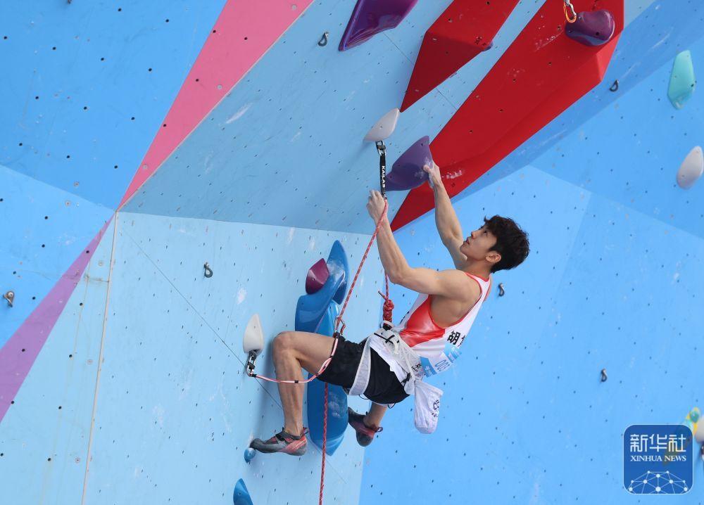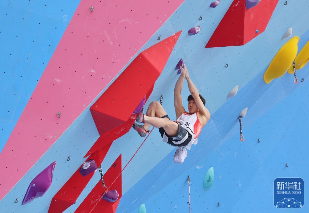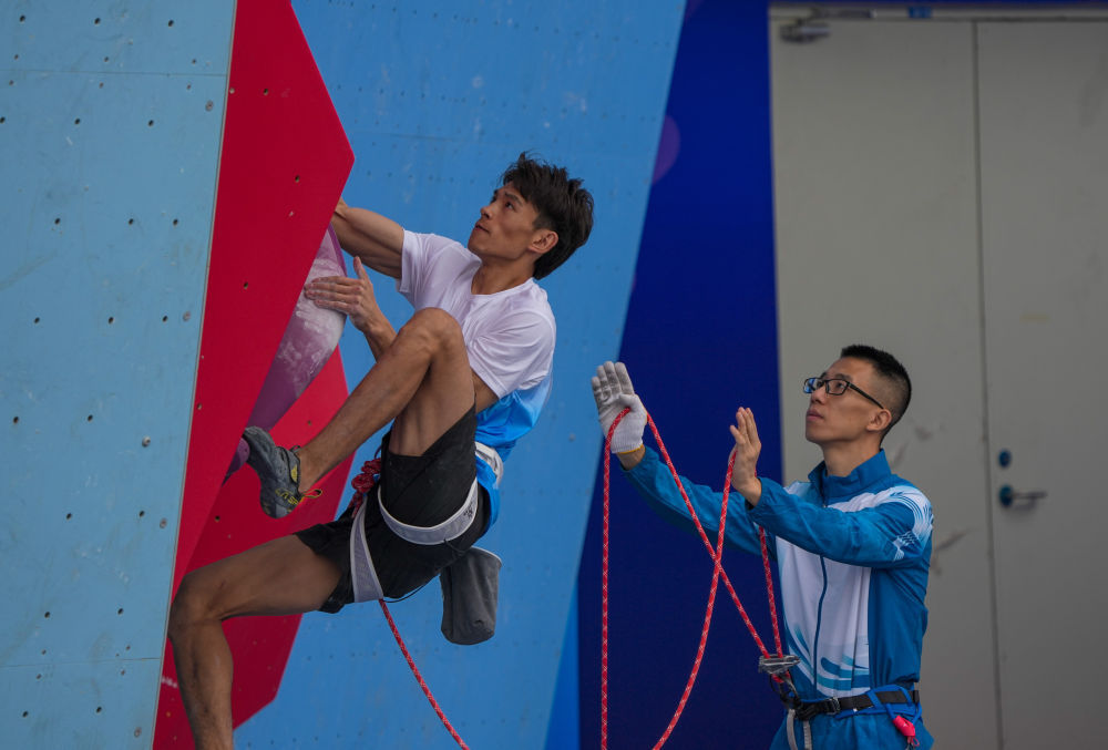 11月12日,第十五屆全國運動會攀巖項目男子難度預賽在廣州舉行。