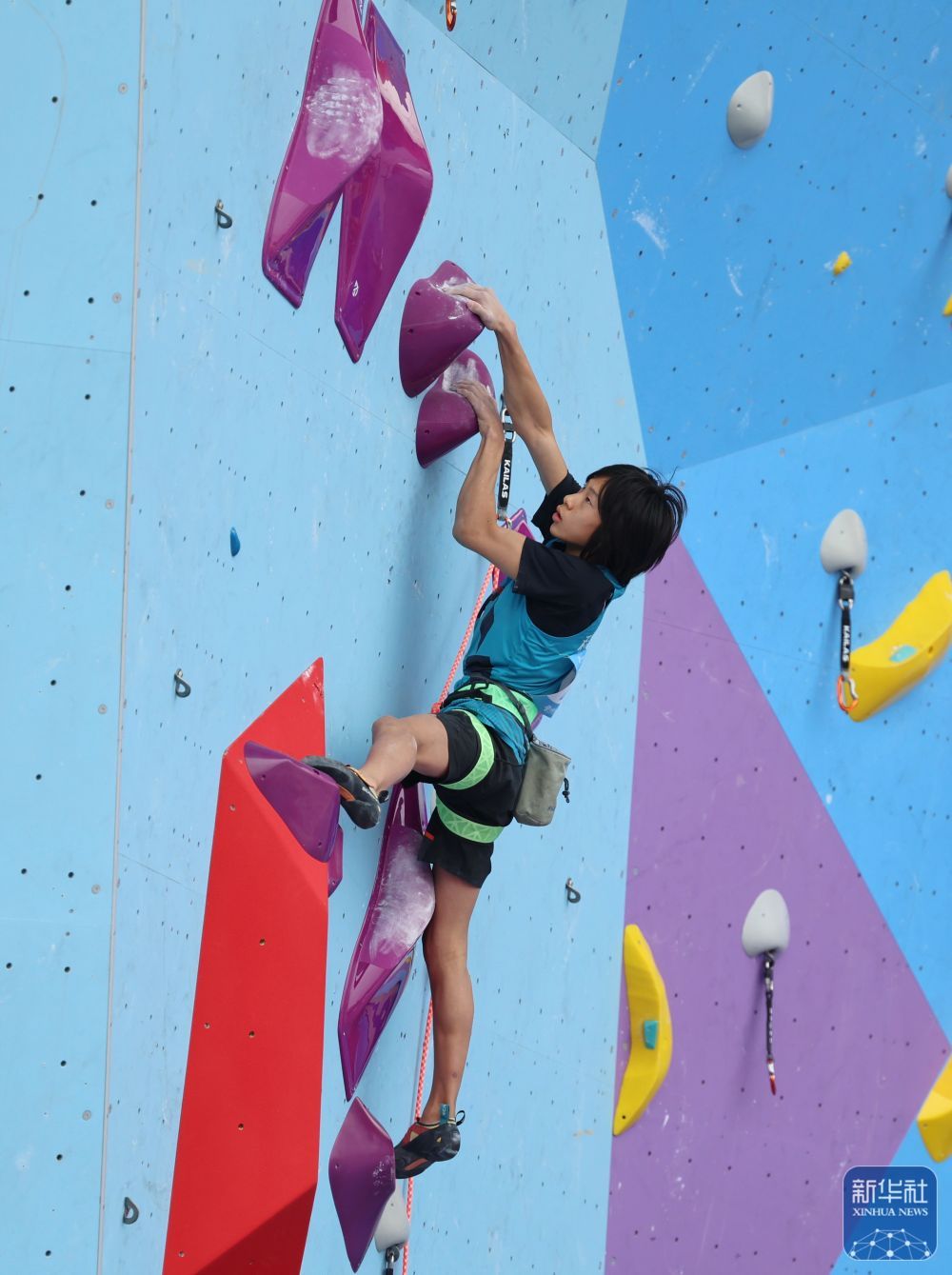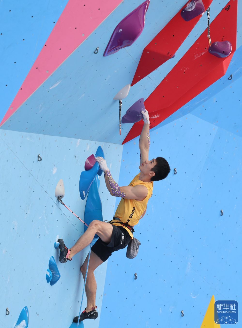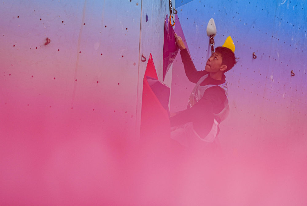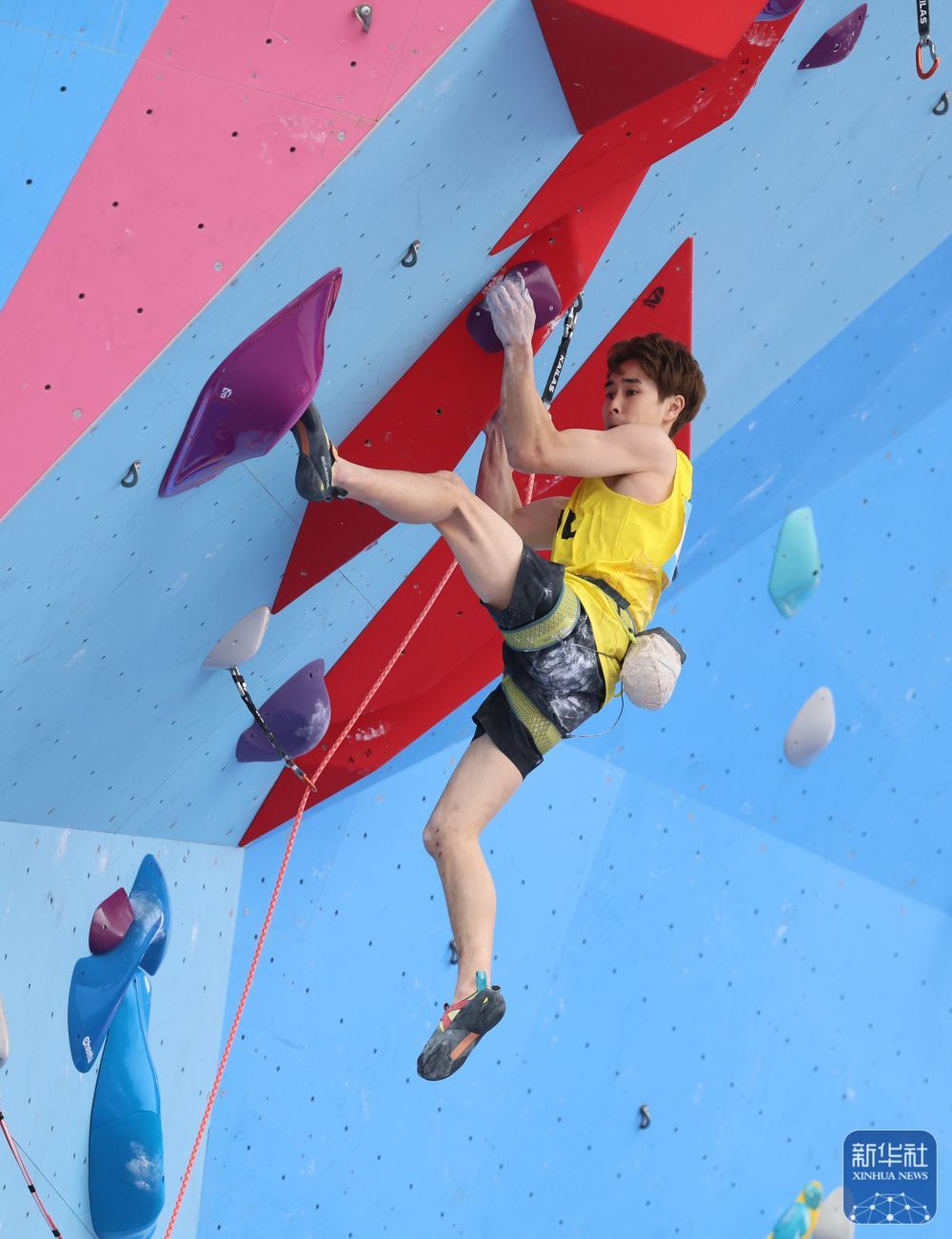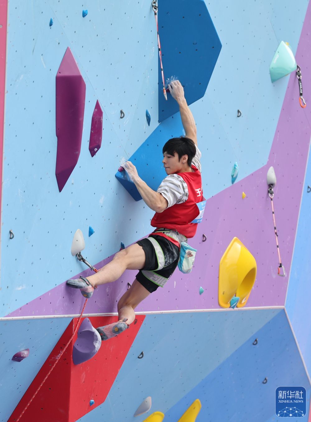 11月12日,第十五屆全國運動會攀巖項目男子難度預賽在廣州舉行。