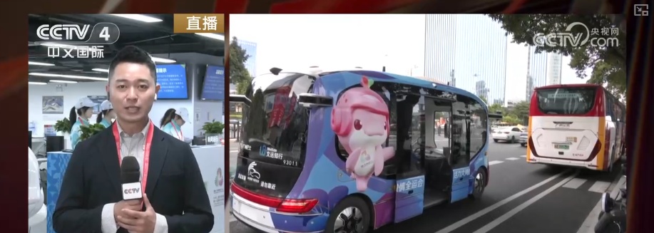 特別方便的是,為了服務全運會,廣州公交推出了5條自動駕駛的公交線路。比如在主新聞中心的樓下,就有一條專門接駁媒體的自動駕駛公交環線。另外幾條線也都是在幾個重要場館周邊,服務場館工作人員和普通的市民群眾。