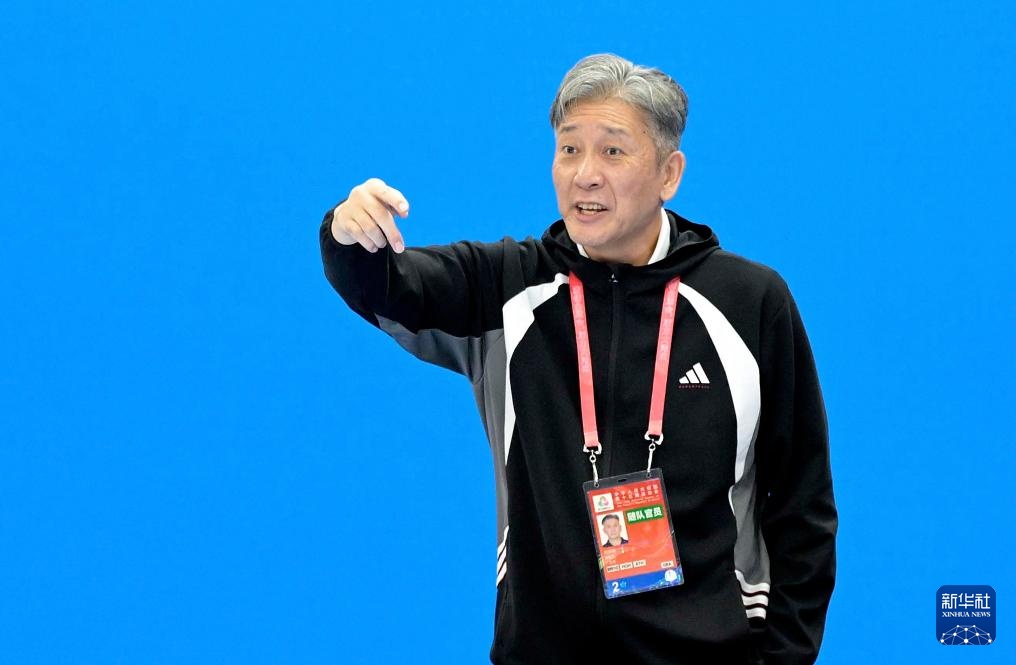 11月12日,廣東隊主教練鄭永剛 (右)在比賽中指導球員。