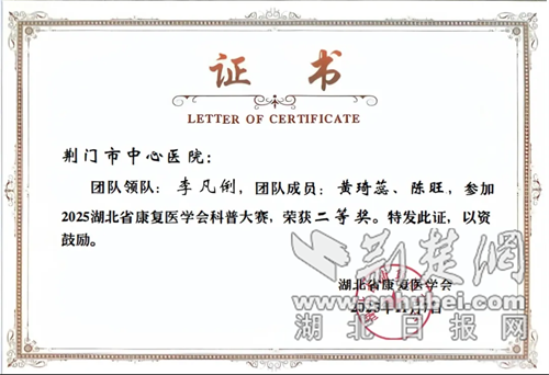 荊門市中心醫院全力推動“臨床康復一體化”,強化早期康復介入和全周期康復模式,拓展亞專科康復特色,在重癥康復、神經康復、肌骨康復、心肺康復、脊柱側彎康復等領域深耕多年,依托多學科協作與先進設備,提供全方位個性化康復服務,引領全市康復技術水平。此次獲獎,既是團隊科普創新能力的集中展現,更是科室專業實力的有力印證,彰顯了科室踐行健康科普社會責任的擔當。