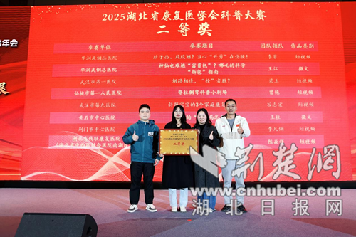 荊楚網(湖北日報網)訊(通訊員 徐婭雯)近日,由湖北省康復醫學會主辦的2025湖北省康復醫學科普大賽圓滿收官。荊門市中心醫院康復治療科以李凡利為領隊,黃琦蕊、陳旺為核心成員的團隊,憑借短視頻作品《哪吒“歪傳”,仙藕塑形記》,從全省117份投稿作品中,經過專家初審,61份進入總決賽;評出一等獎4項、二等獎8項、三等獎16項、優秀獎33項。荊門市中心醫院康復治療科在眾多團隊中脫穎而出,斬獲大賽二等獎。