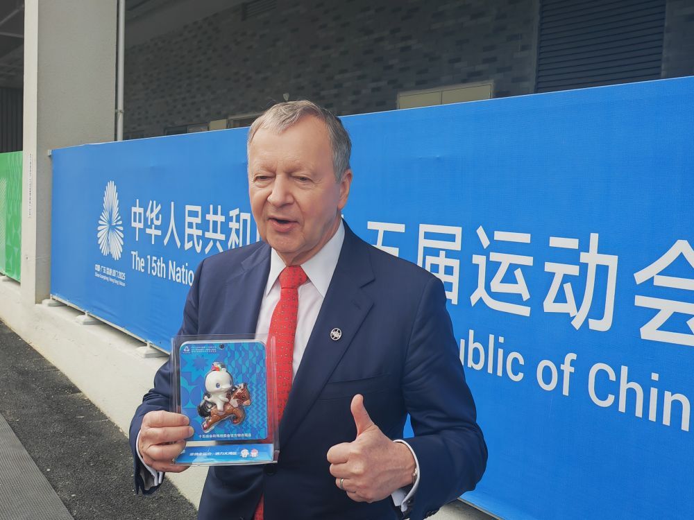 應家柏介紹,本屆全運會期間,香港賽馬會圍繞場地設計、馬匹福利、反興奮劑、馬房管理、賽事服務保障、宣傳與社區活動六大方面為馬術賽事提供技術支持。“這是大灣區首次一起承辦全國性賽事,各個城市共同慶祝這一體育盛會。參觀深圳光明國際馬術中心時我感到欣喜,場館符合極高的國際標準——設計精美、功能完善,更重要的是運營團隊專業素養出眾。我要表示祝賀,賽事呈現非常精彩。”