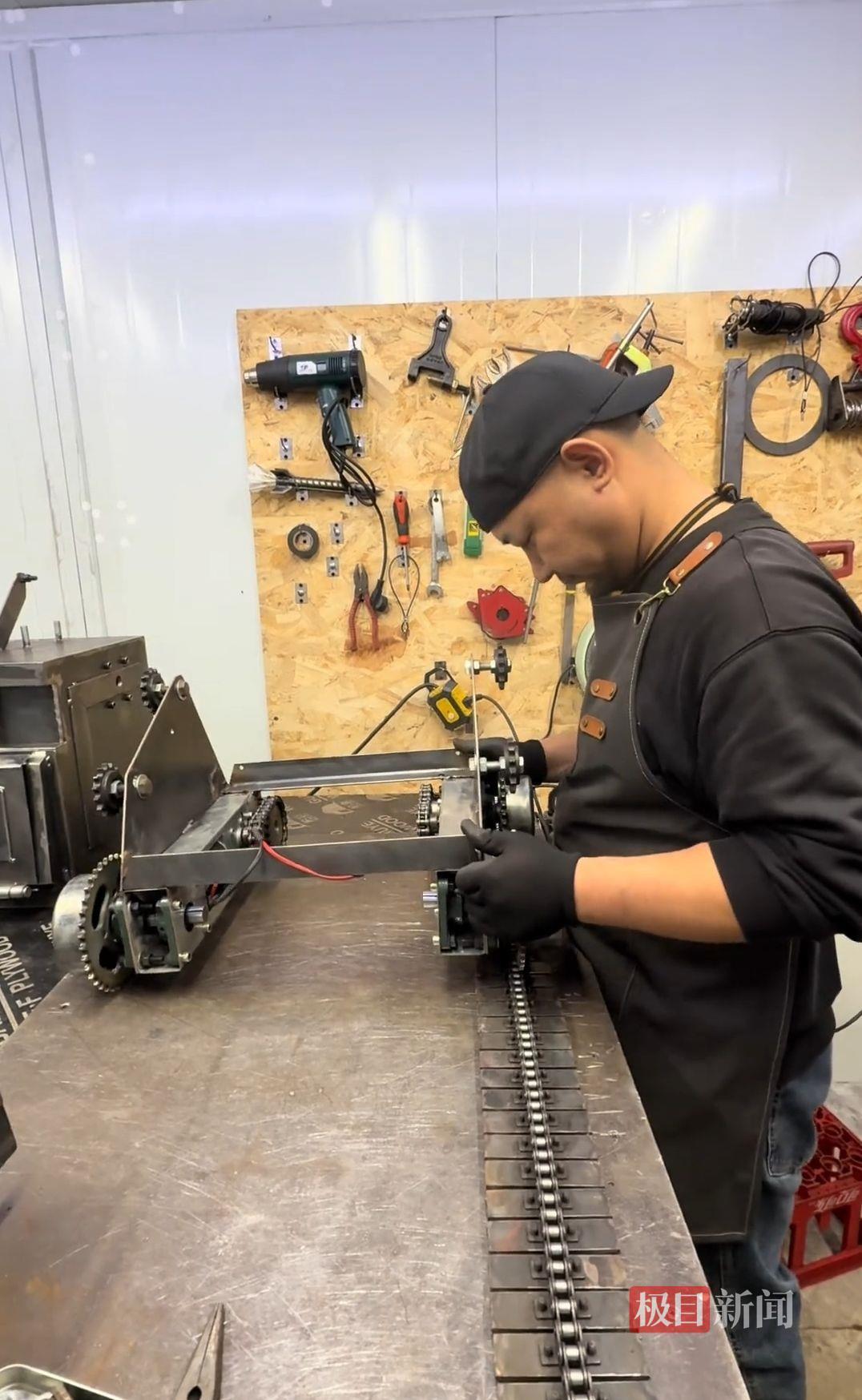 張先生表示制作這些玩具需要掌握電焊技術,機械機構和電路知識,他平時有空就會在網上學習相關內容,制作“瓦力”機器人還是有一定難度也很費精力,但看到兒子和它玩得非常開心,張先生覺得這一切的付出和努力都是值得的。