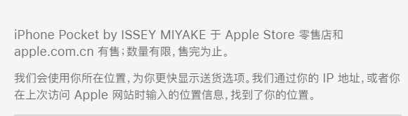 經查詢蘋果官網發現,iPhone Pocket by ISSEY MIYAKE于Apple Store零售店和apple.com.cn有售;數量有限,售完為止。
