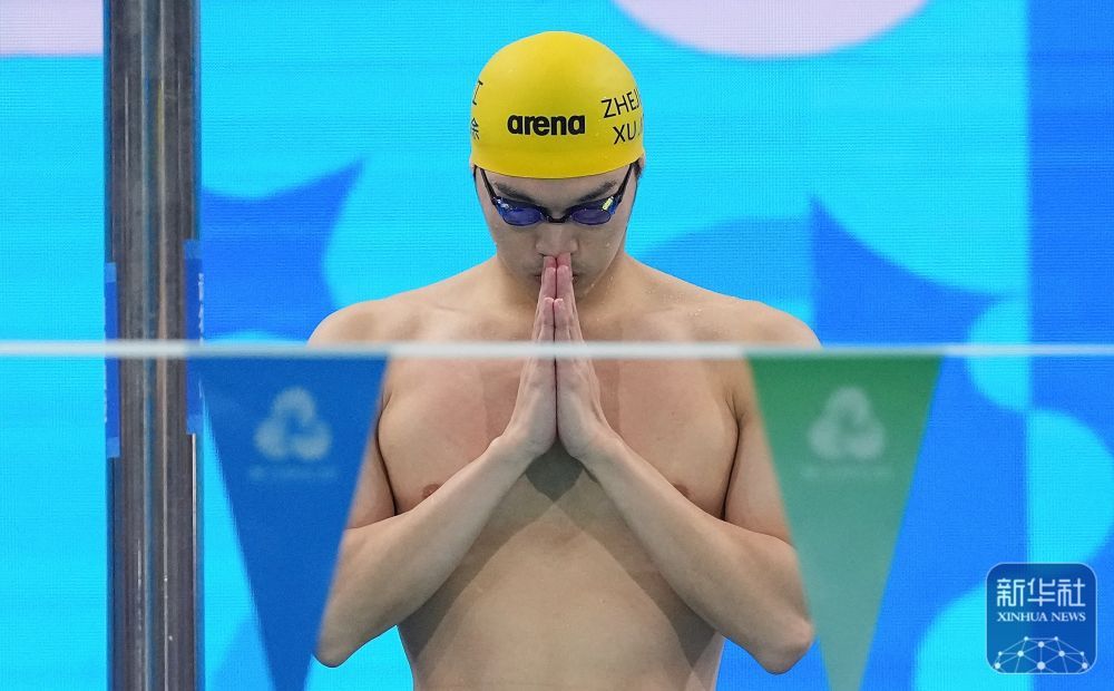 11月12日,浙江隊選手徐嘉余奪得第十五屆全國運動會游泳男子100米仰泳決賽冠軍。新華社記者 薛宇舸 攝