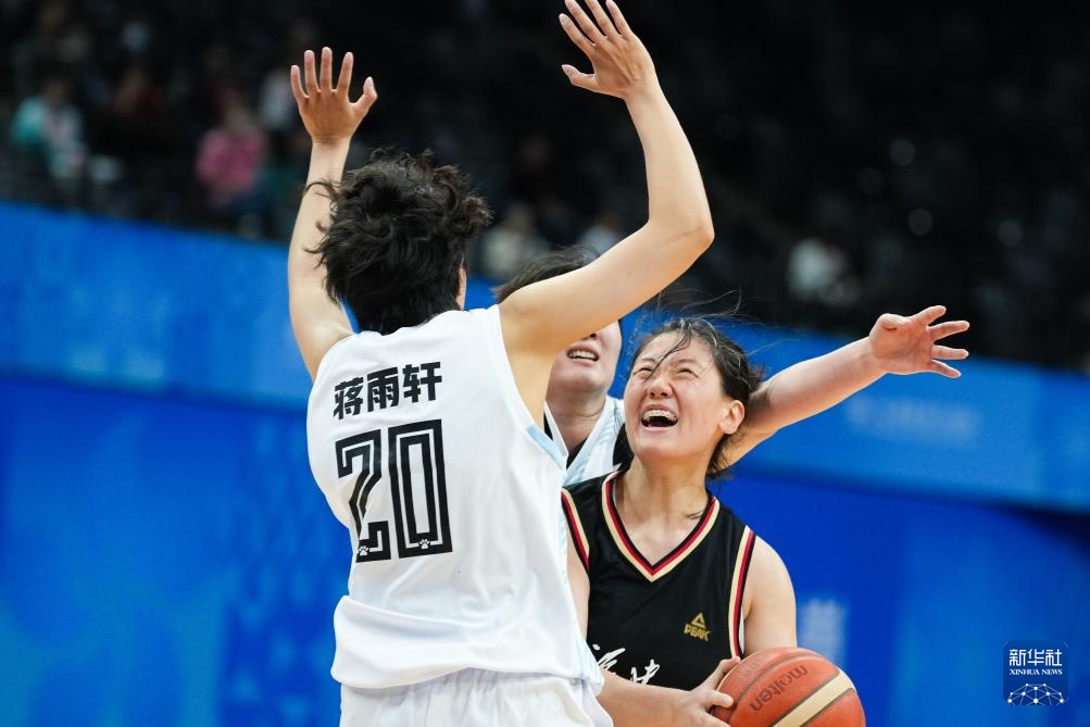 11月12日,天津隊球員王鏝淋(左)與福建隊球員肖婉鈺在比賽中拼搶。