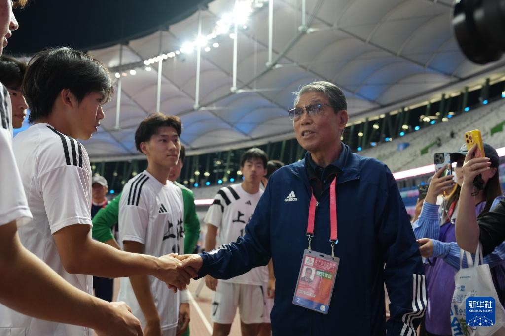 11月12日,上海隊總教練徐根寶賽后與隊員握手致意。