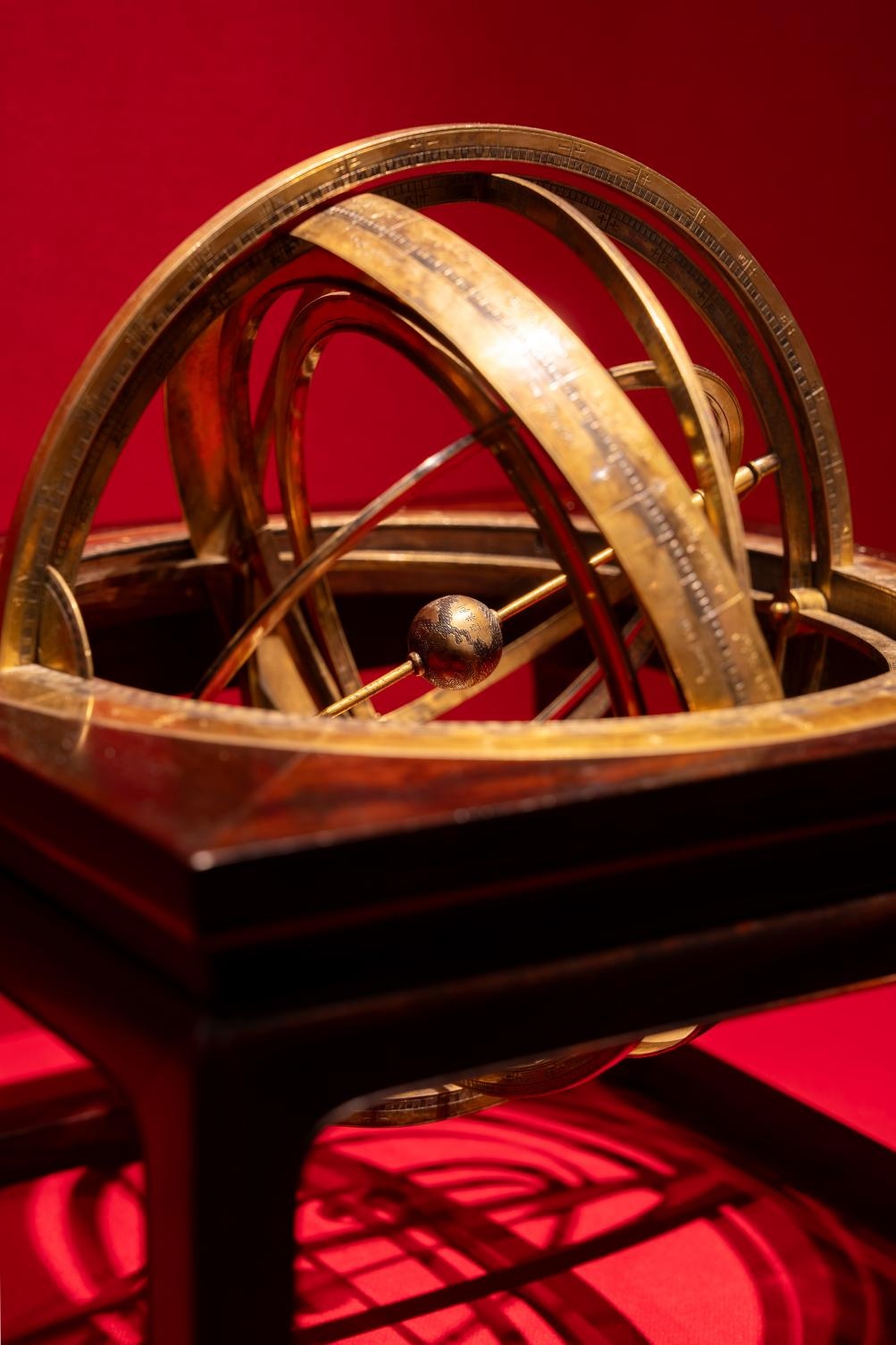 “‘百年守護’展中精選了幾件清代天文儀器,如渾儀、簡平星盤儀、新法地平日晷等。它們不僅體現了中華文明的賡續,也反映了中西方文化的交流。”徐婉玲說。清康熙銀鍍金渾儀的中心嵌一個小地球,上刻有“亞細亞”“歐羅巴”等大洲的名稱。這件渾儀可以演示日月交食之成因,推動了西方天文知識在中國的傳播。