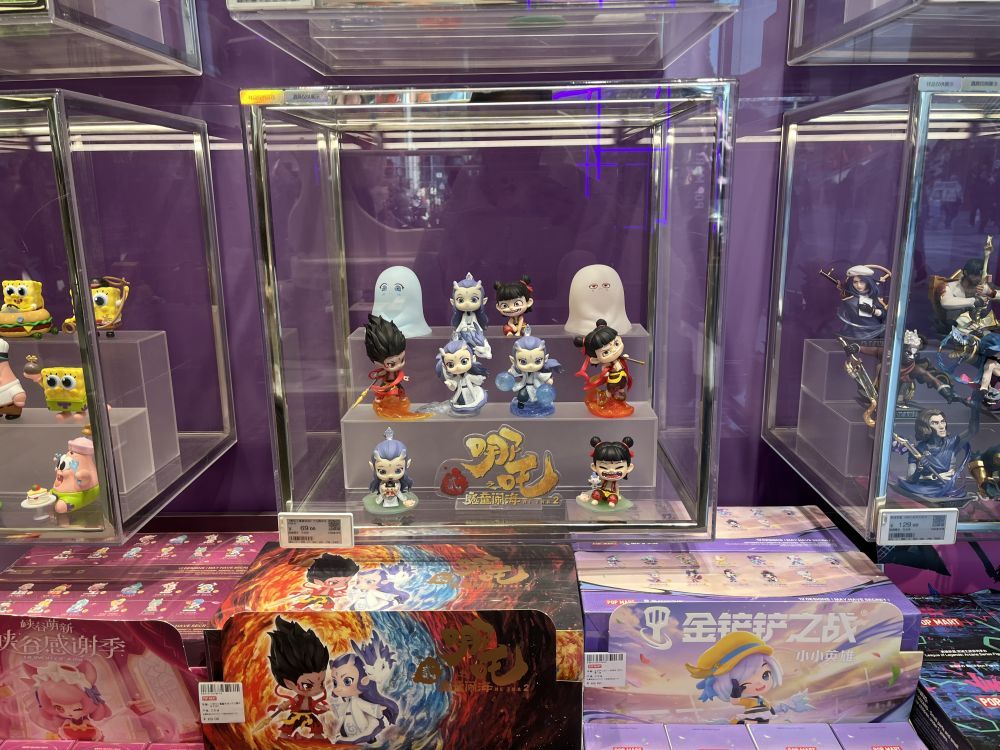記者走訪北京多家潮玩手辦門店發現,哪吒手辦、中國積木等商品陳列在醒目位置,備受消費者關注。在北京西四環一家泡泡瑪特門店,正在挑選哪吒手辦的“80后”潮玩收藏愛好者崔鑫告訴記者:“這幾年隨著一些優質IP的崛起,國潮手辦越來越火,不僅制作工藝越來越精細,深厚的文化內涵也讓我更加著迷。”