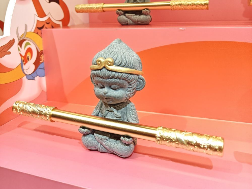 朱炳仁·銅開發的國潮款產品“悟空如意金箍筆”。新華社記者張璇 攝