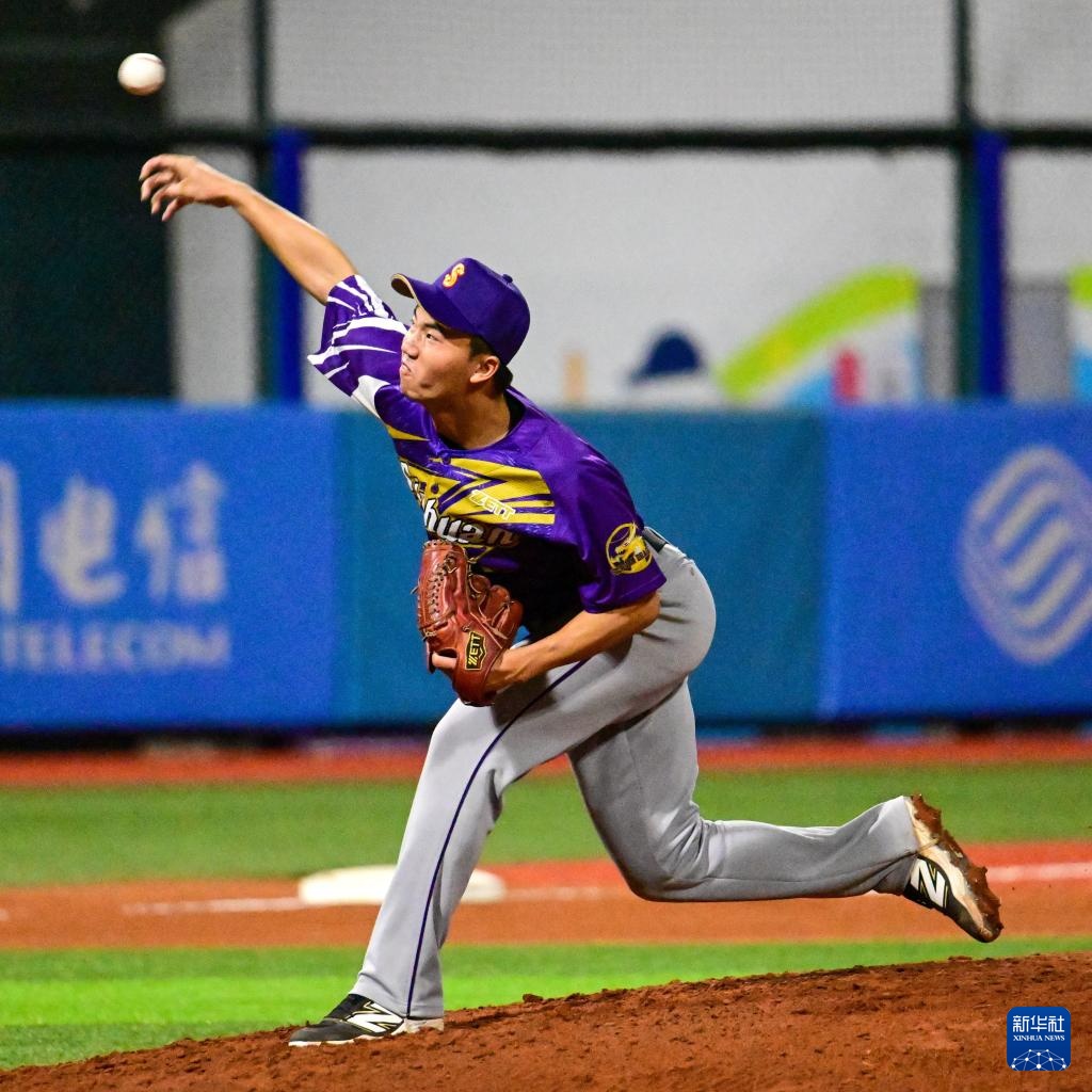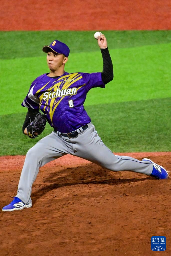 11月12日,四川隊球員蔣博涵在比賽中投球。