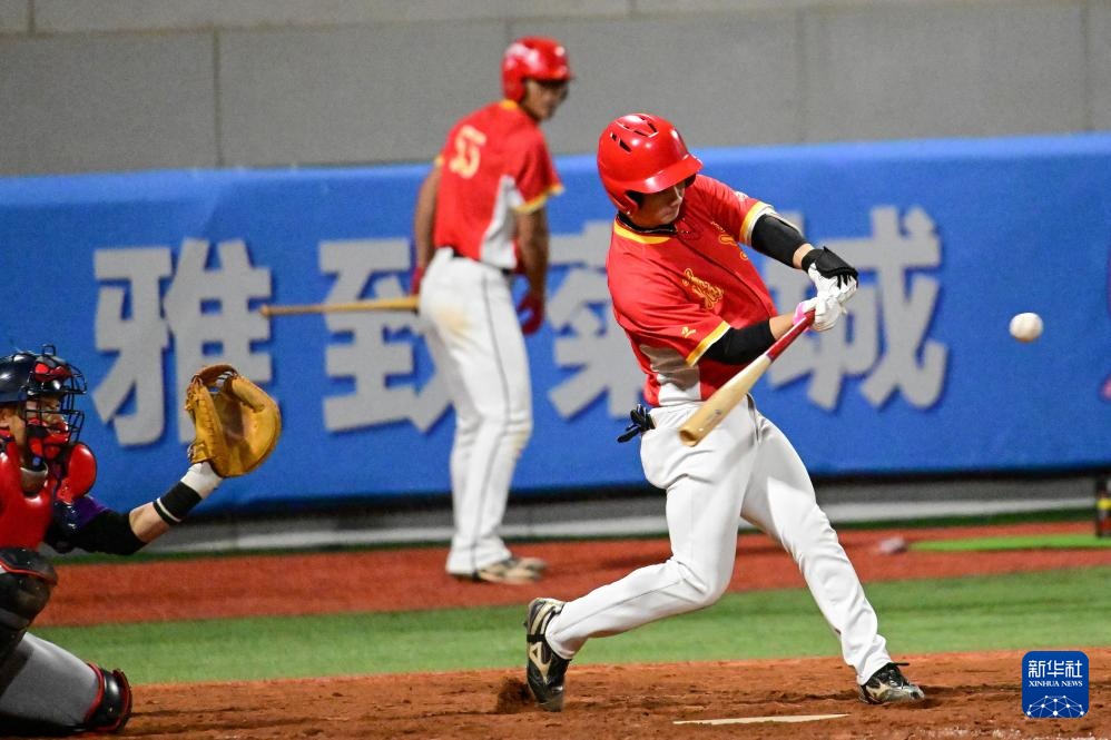 11月12日,四川隊球員秦培林在比賽中擊球。