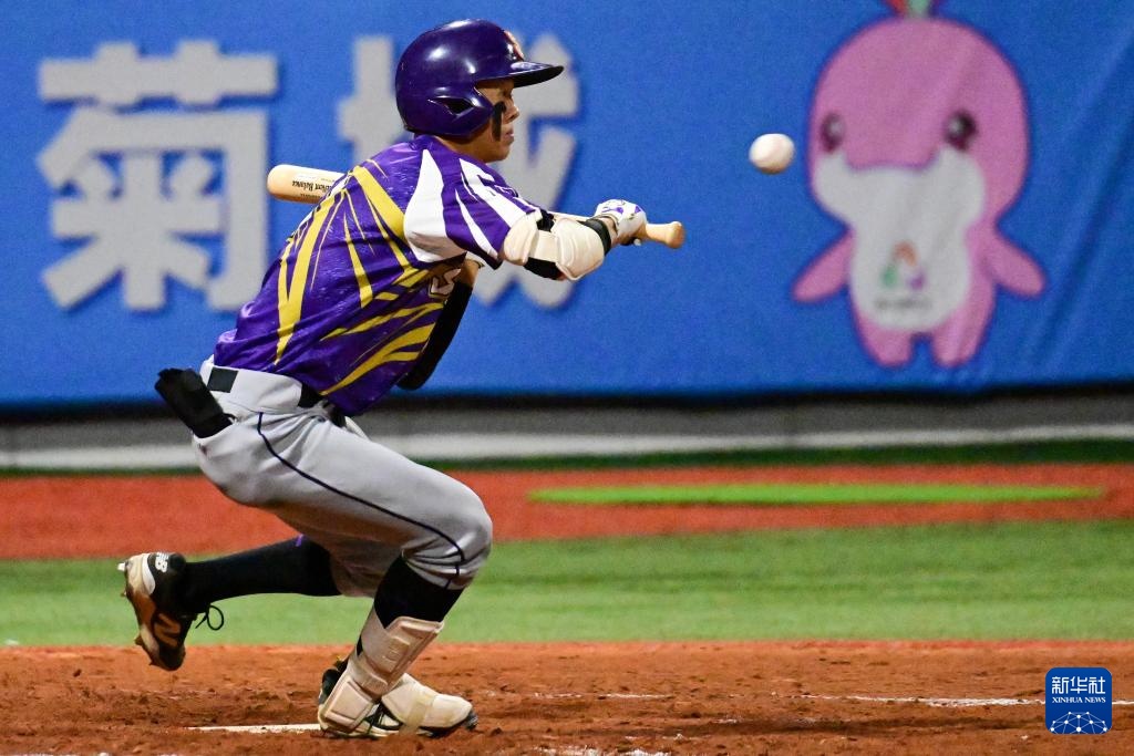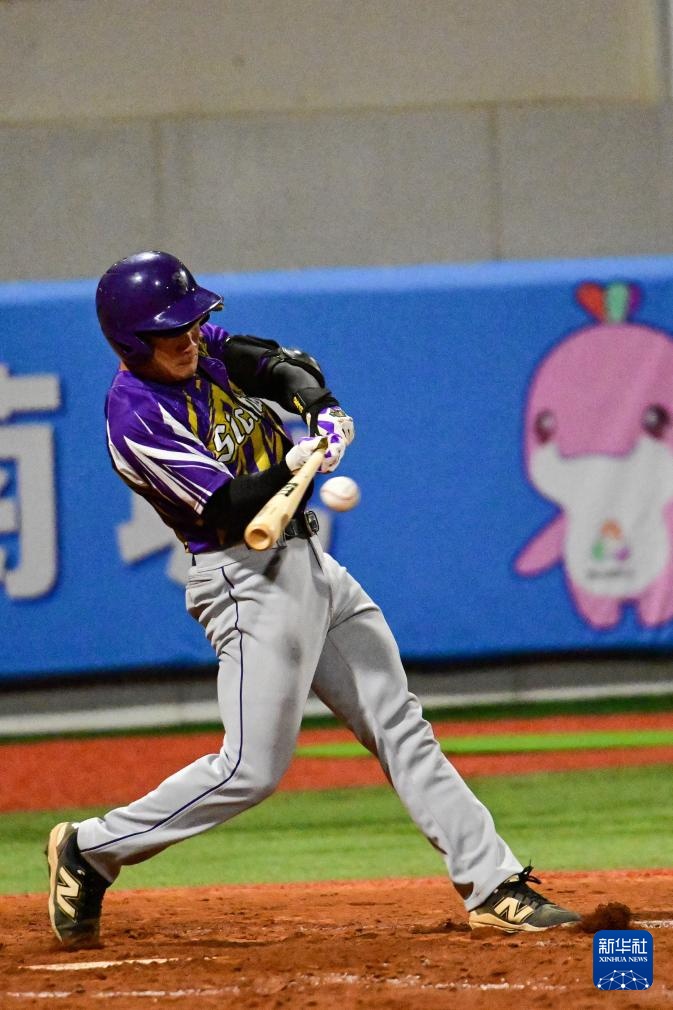 11月12日,福建隊球員許子紳(右)在比賽中擊球。