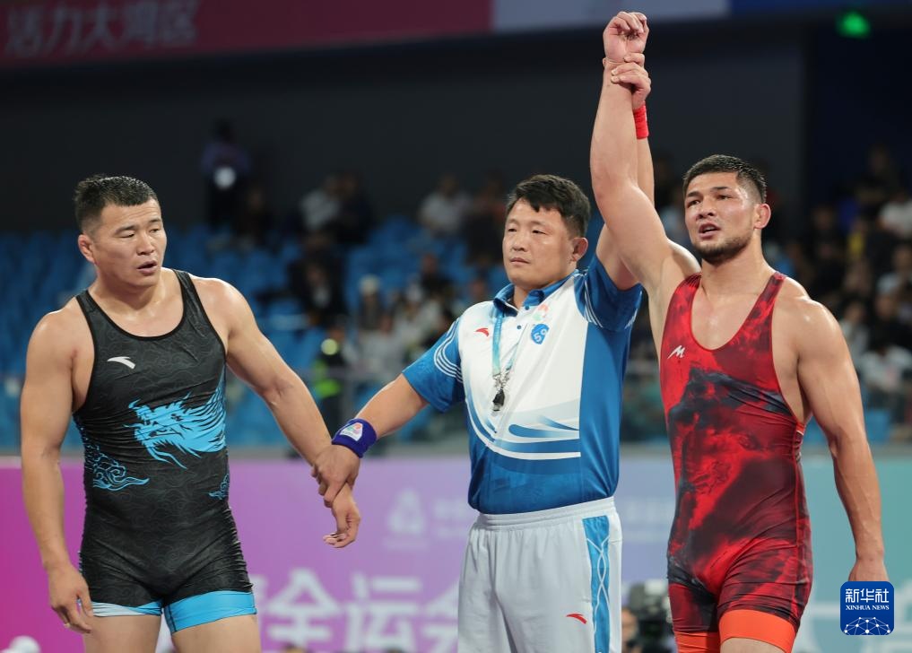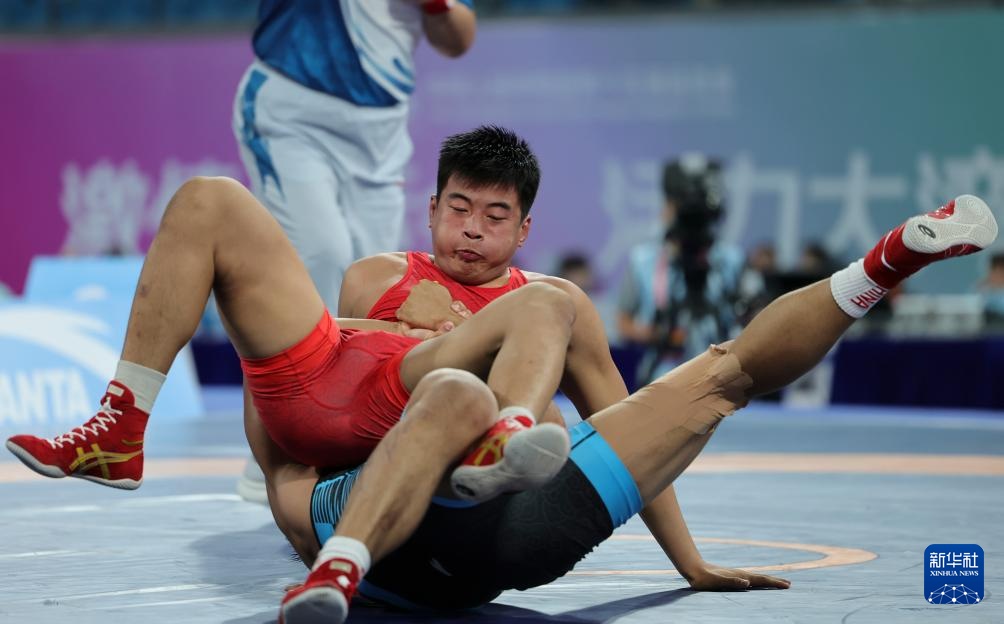 當(dāng)日,第十五屆全國運動會摔跤男子自由式97公斤級比賽在廣東清遠(yuǎn)舉行。