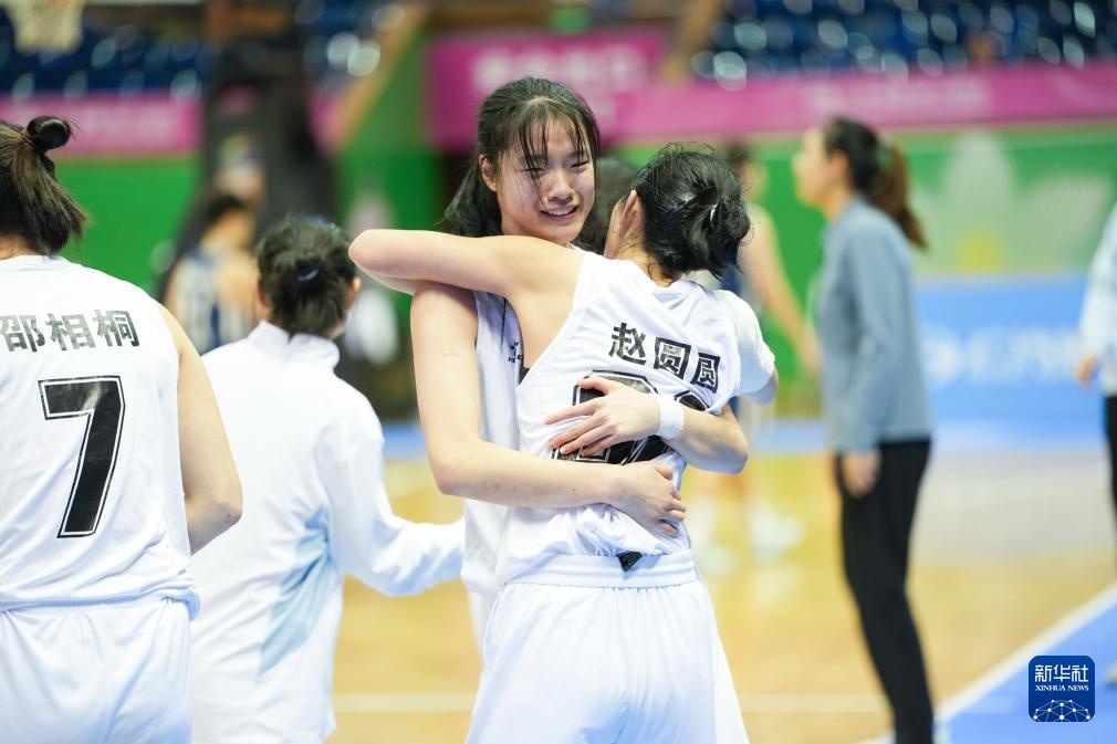 11月12日,湖北隊(duì)球員楊月潔(左三)與隊(duì)友趙圓圓在比賽后擁抱。