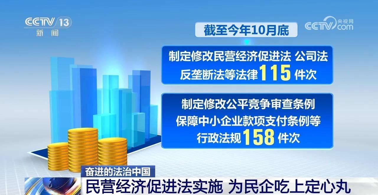 為推進法治化營商環境建設,五年來,我國深入推進科學立法、民主立法、依法立法,切實以高質量立法保障經濟社會高質量發展,截至今年10月底,制定修改民營經濟促進法、公司法、反壟斷法等法律115件次,制定修改公平競爭審查條例、保障中小企業款項支付條例等行政法規158件次。同時,堅持立改廢釋并舉,對全部現行600多部行政法規開展集中清理,統籌開展涉企不平等政策和法律法規清理,為建設統一大市場、推動高質量發展提供了重要保障和支撐。