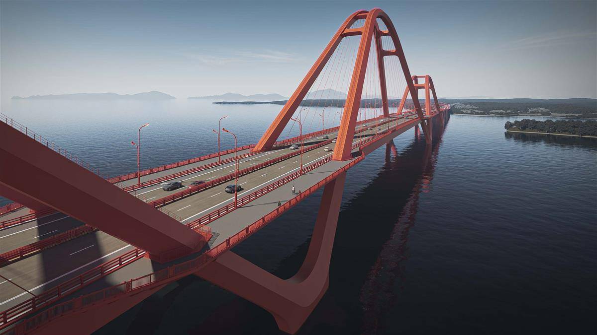 天子山大橋外觀設計主題為“拱連梁湖”,靈感來源于梁子湖的湖水波光和天子山的山勢起伏。橋梁采用連續的拱形結構,整體造型輕盈而有力,線條簡潔流暢,與周邊自然環境相協調。