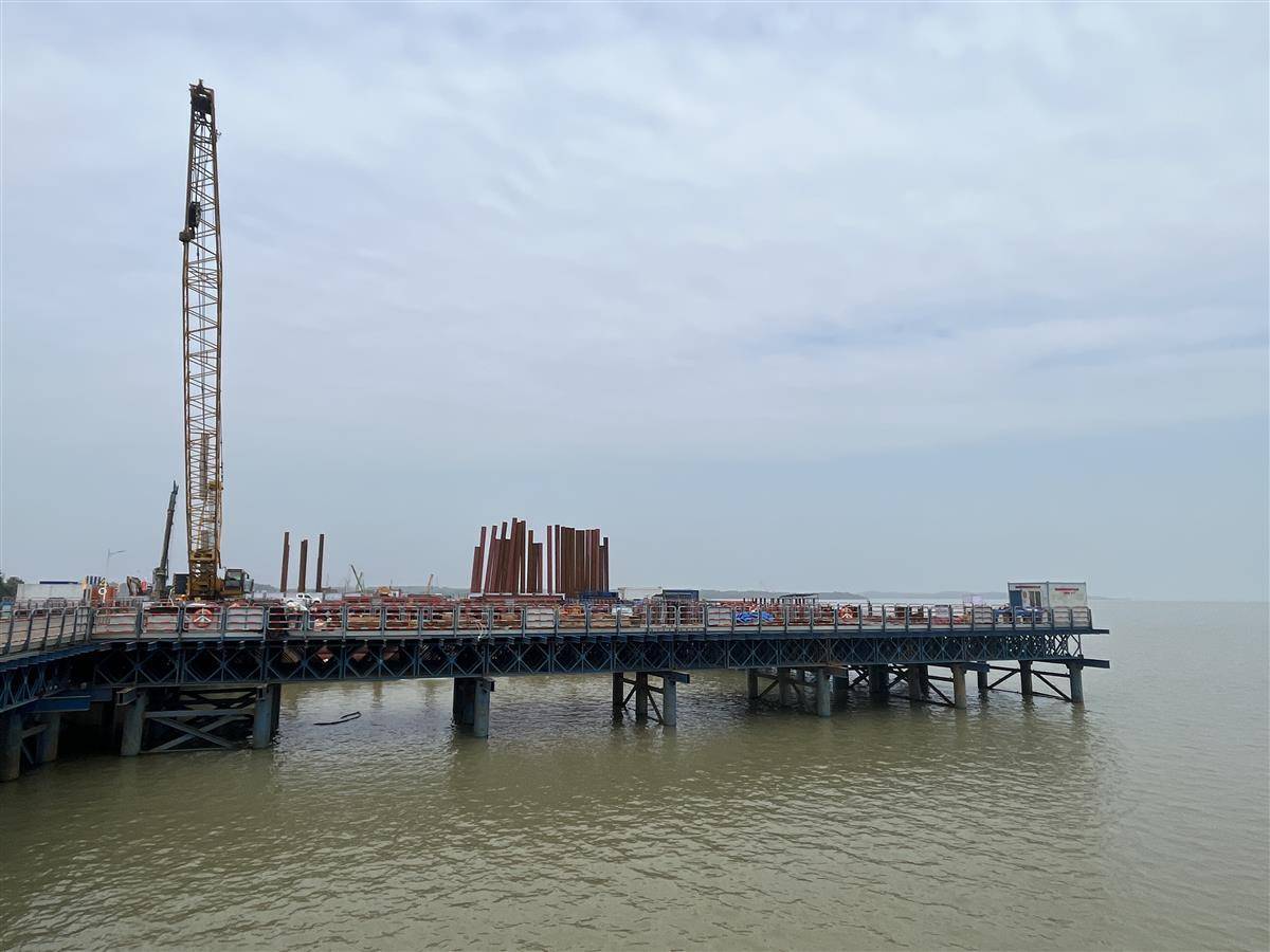 深達10米的基坑圍堰、繁雜的V型墩施工以及高空、水上、有限空間等多重高風險作業環境交織,讓大橋的每一步建設都充滿了考驗。面對重重難點,建設者們以一系列技術創新作為回應,不僅攻克了難題,更實現了節能降耗、綠色環保的目標。