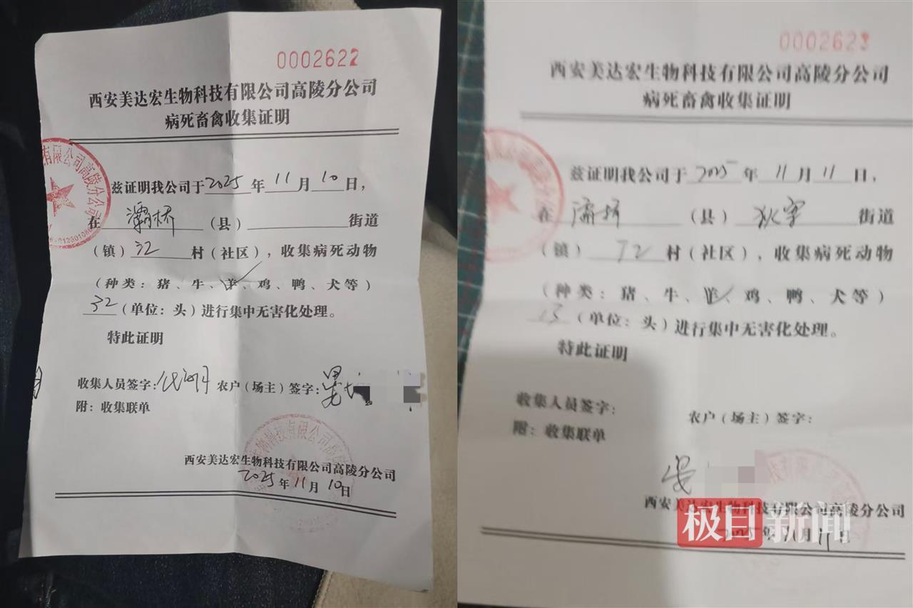 第三方公司出具的證明顯示,11月10日、11日,該公司拉走了晏家45只死羊,進行了集中無害化處理。