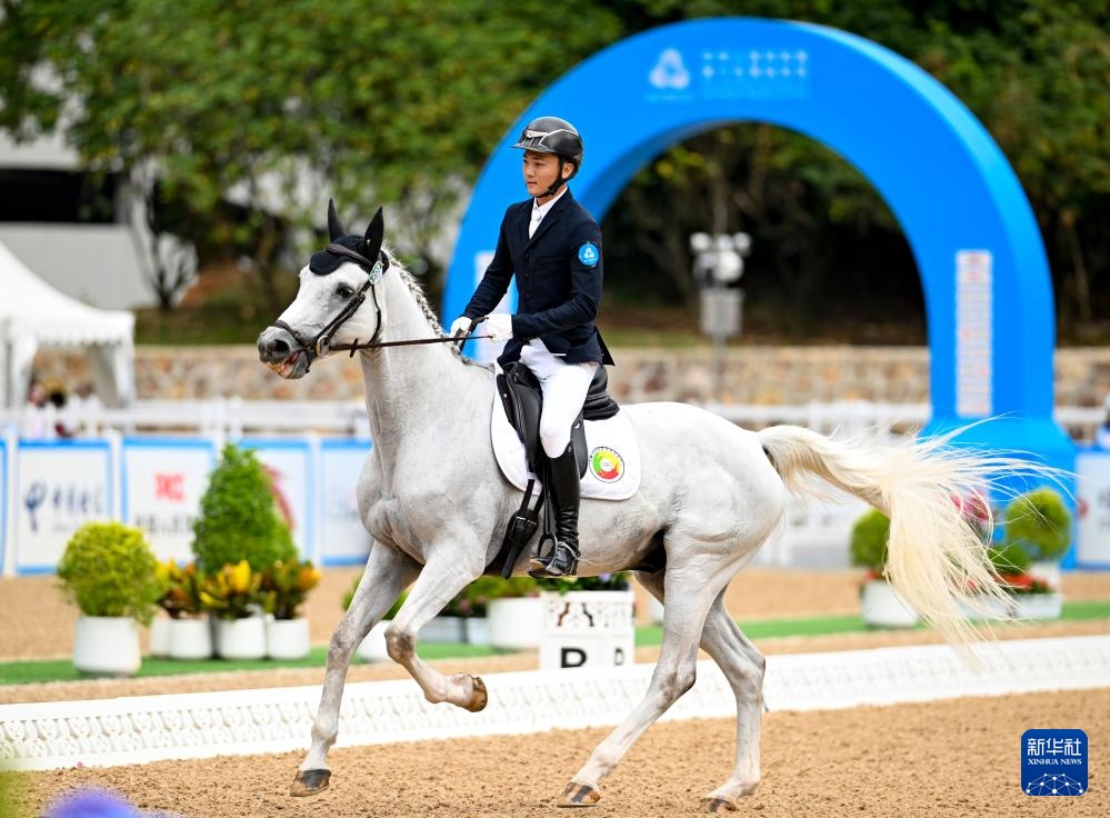 11月13日,香港隊(duì)選手何誕華和馬匹“OPALIEN VANTGE BERGTE”在比賽中。他在個(gè)人賽中排名第22,香港隊(duì)在團(tuán)體賽中排名第六。