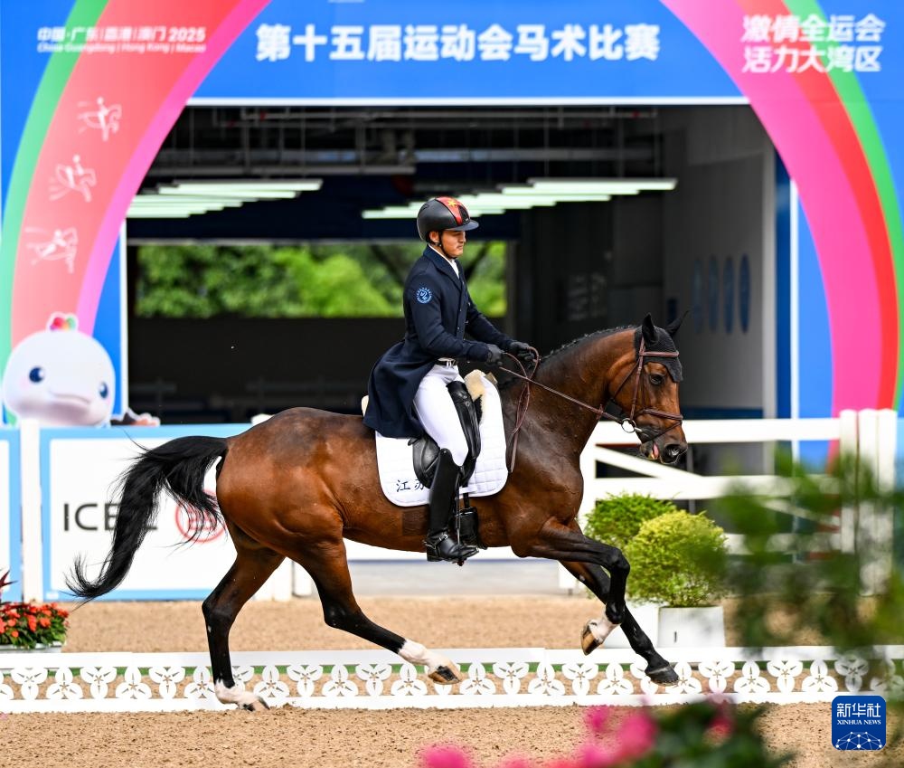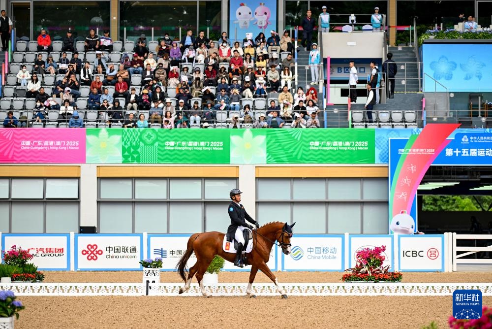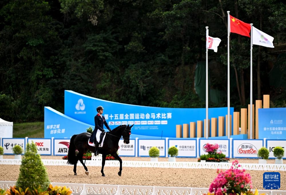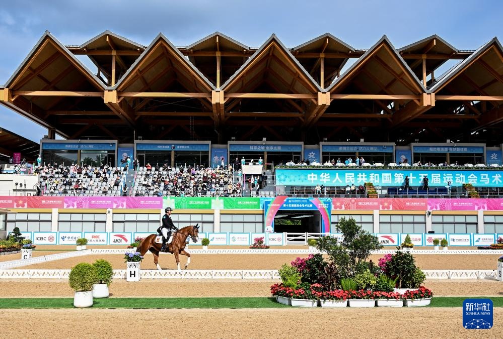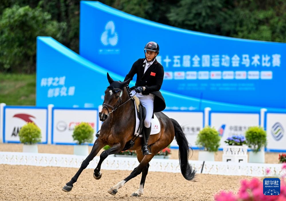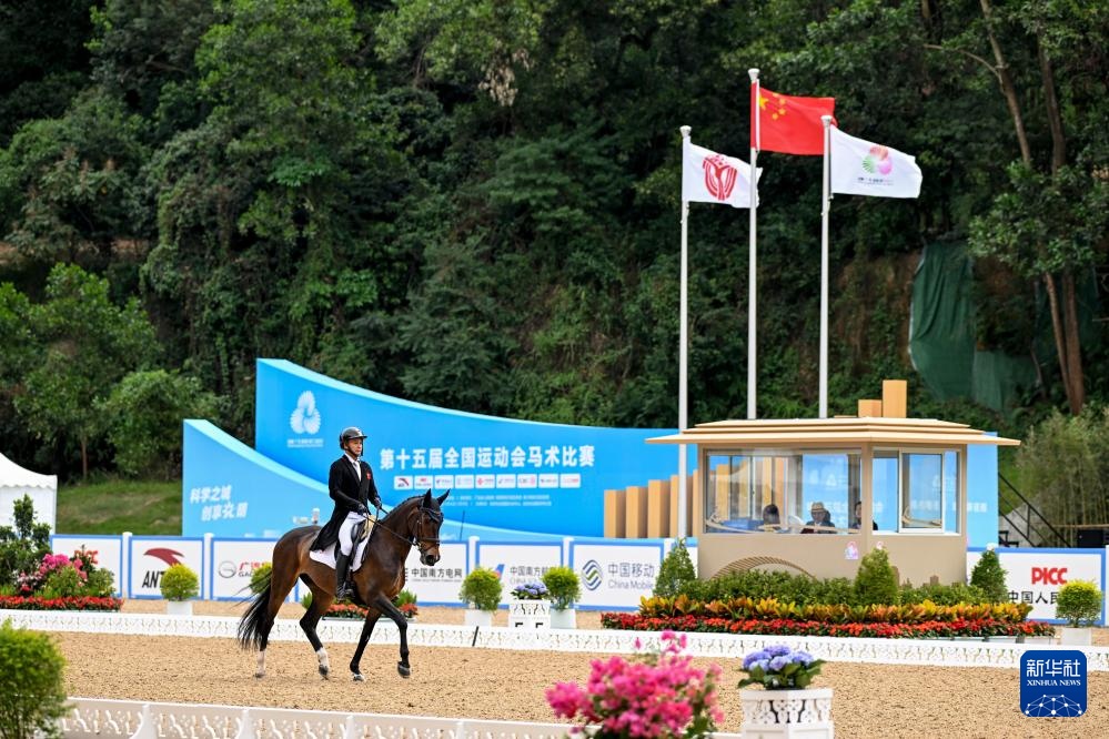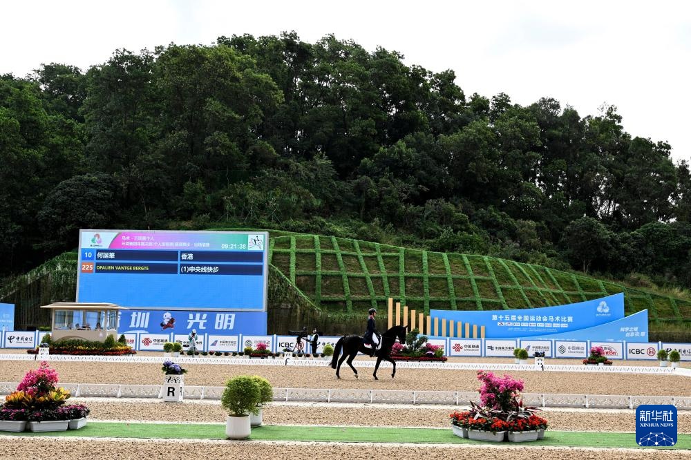 當(dāng)日,第十五屆全國(guó)運(yùn)動(dòng)會(huì)馬術(shù)三項(xiàng)賽團(tuán)體賽決賽(個(gè)人資格賽)盛裝舞步在廣東深圳光明國(guó)際馬術(shù)中心舉行。