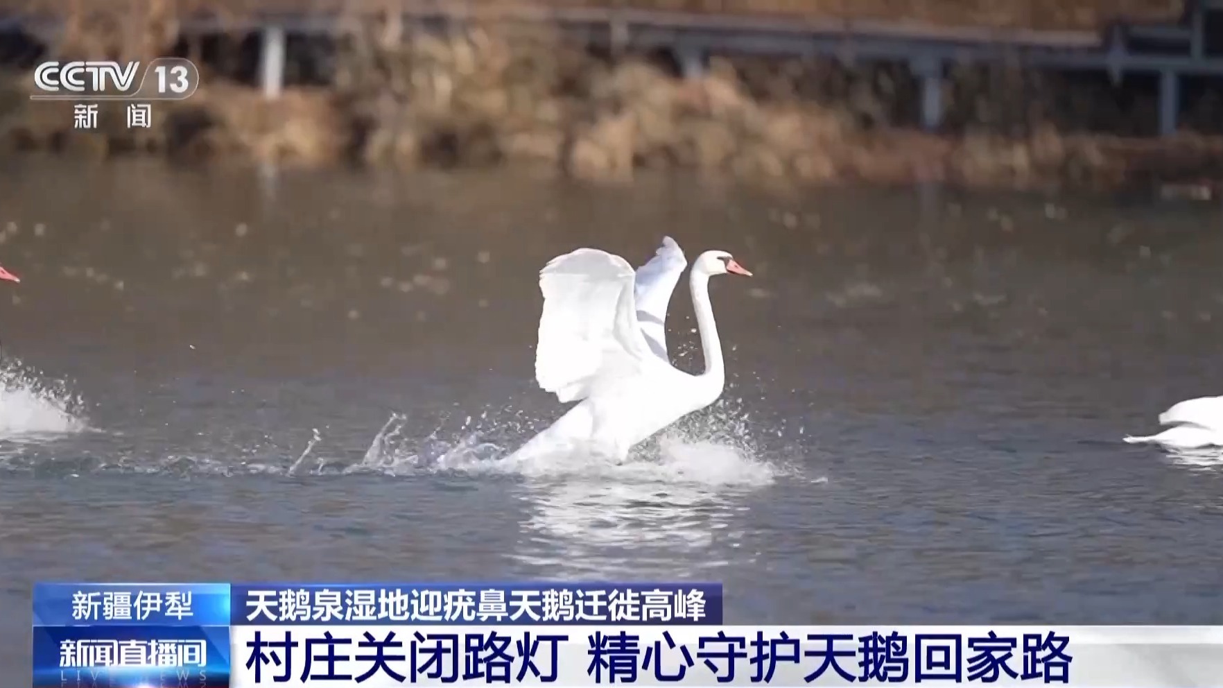 村民 韓新林:天鵝太多的時(shí)候,我們就適當(dāng)補(bǔ)充些玉米、稻谷,天鵝身體不好,遷徙的時(shí)候死亡率很高的,天特別冷的時(shí)候,也有個(gè)別天鵝會(huì)被凍到冰上面的,哪怕再危險(xiǎn),我們要以救天鵝為主。
