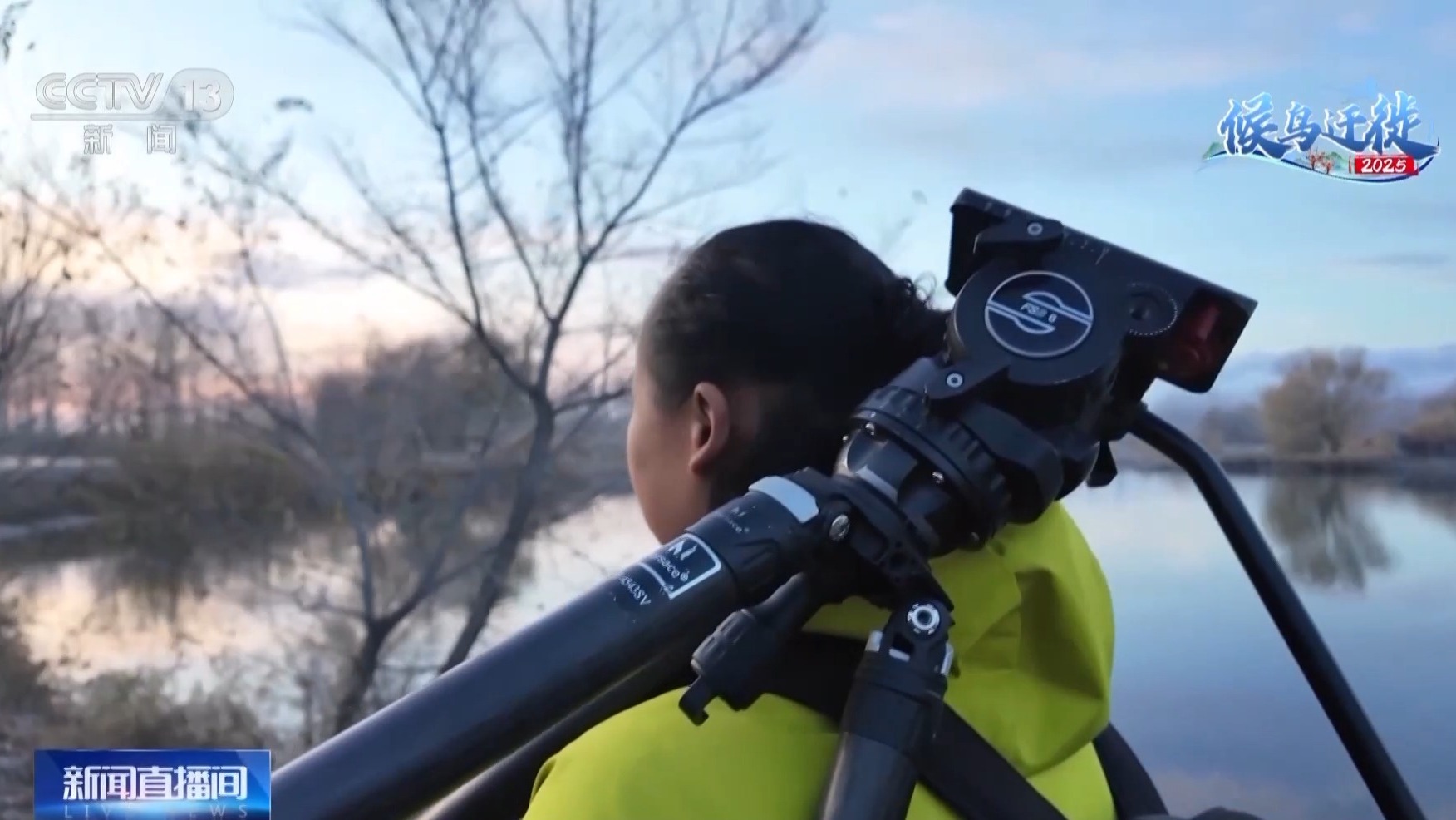 每當(dāng)天鵝歸來(lái),村民韓新林都會(huì)按時(shí)來(lái)到湖邊,架起手機(jī)做直播,一邊講述自己與天鵝的故事 ,一邊給大家介紹疣鼻天鵝。他是32年前第一個(gè)在這里發(fā)現(xiàn)疣鼻天鵝的人,也成了村里第一任“天鵝守護(hù)人”。