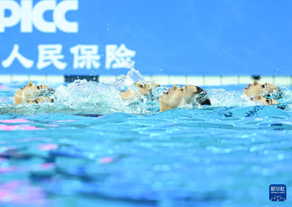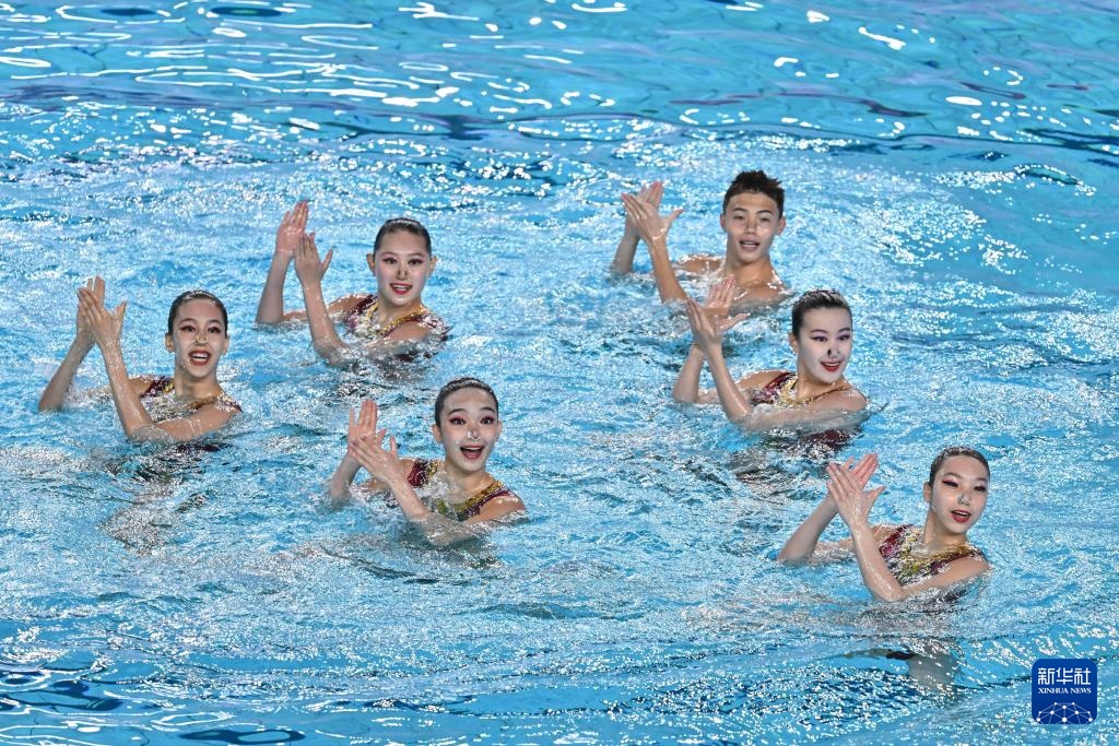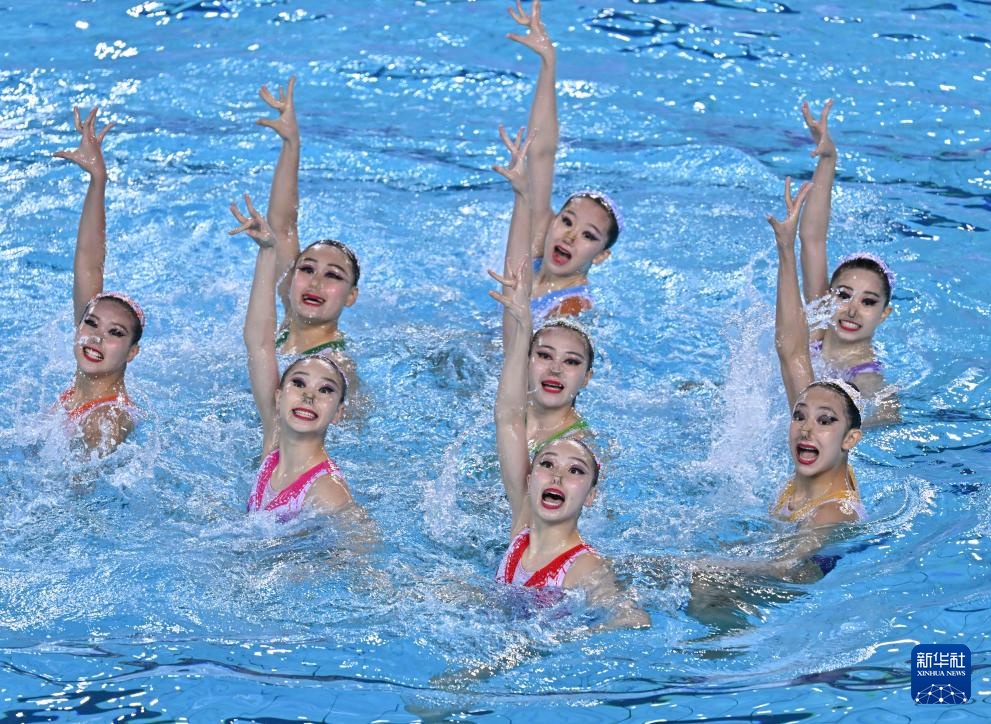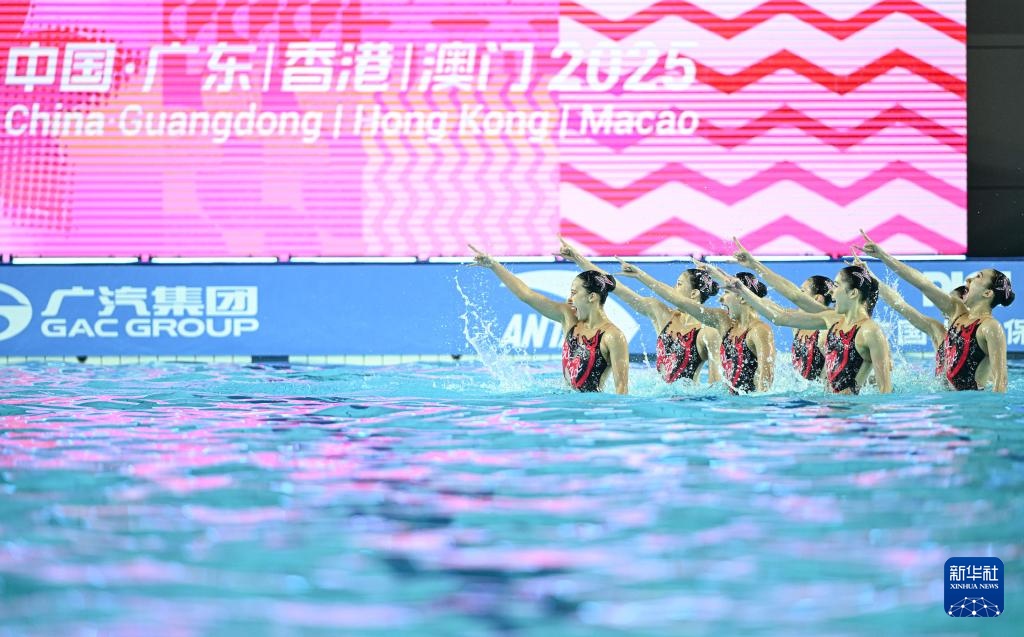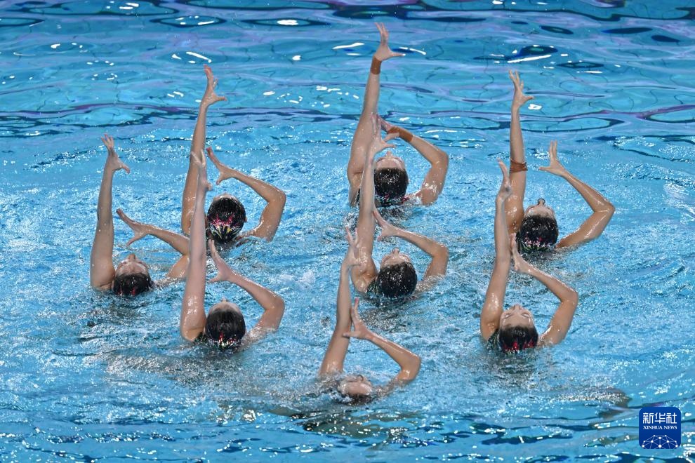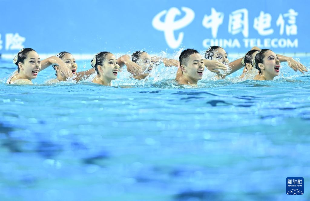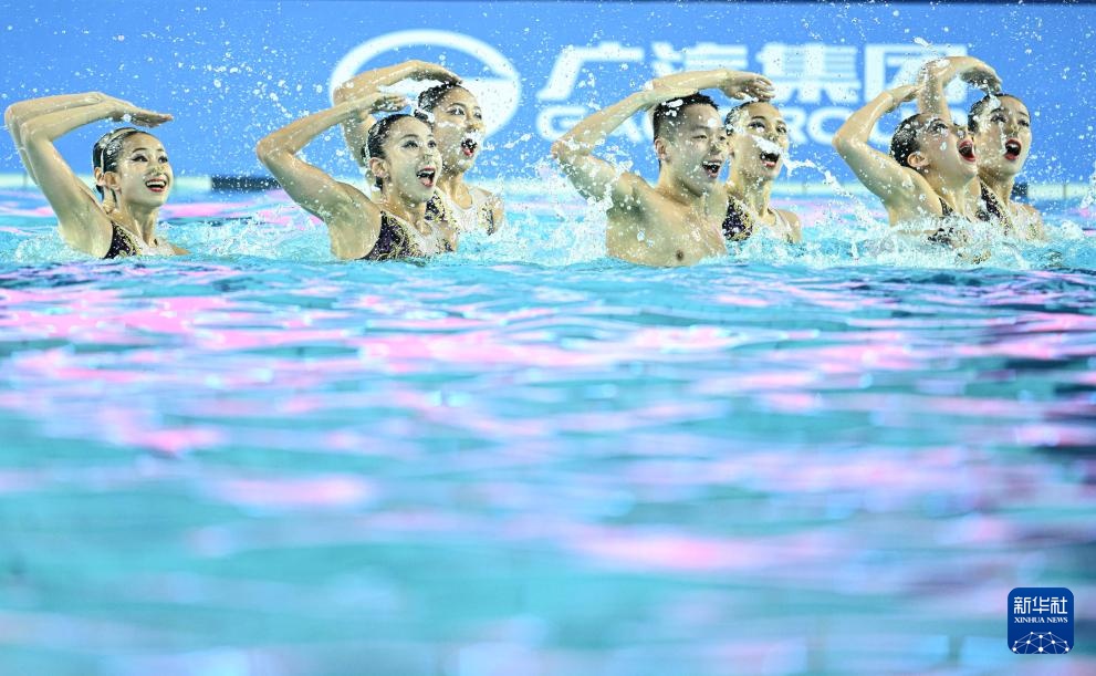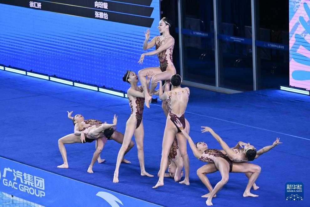 當日,第十五屆全國運動會花樣游泳項目集體技術自選比賽在廣東江門舉行。