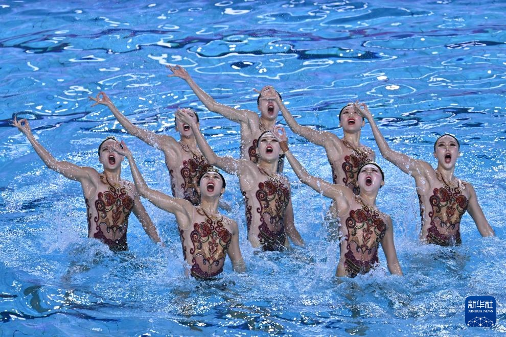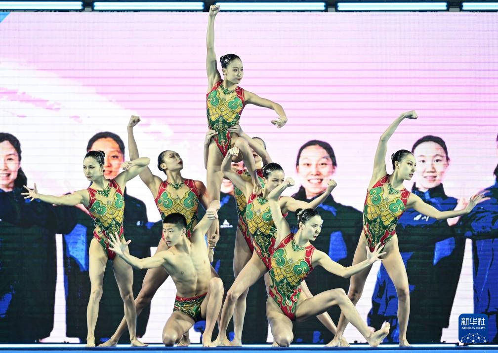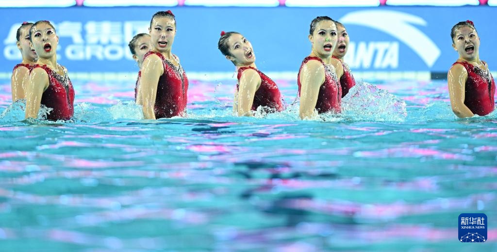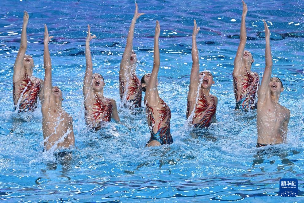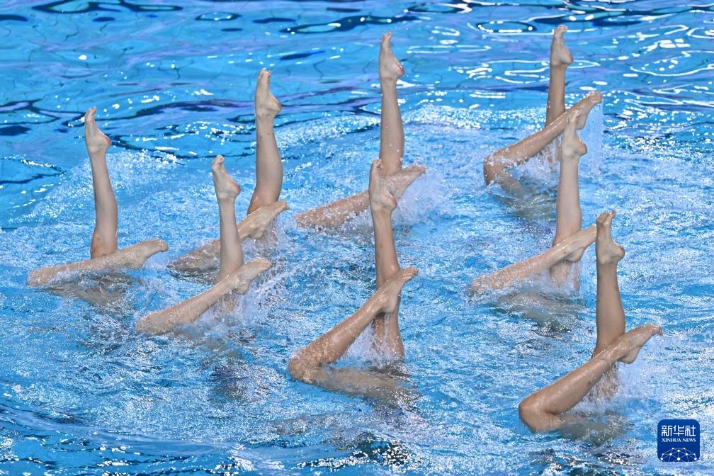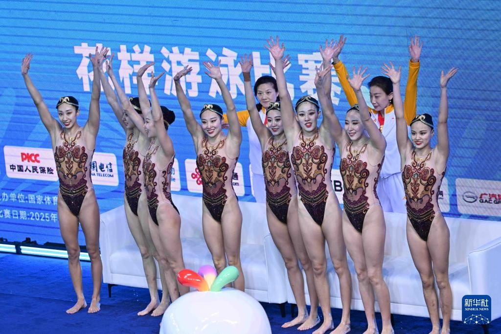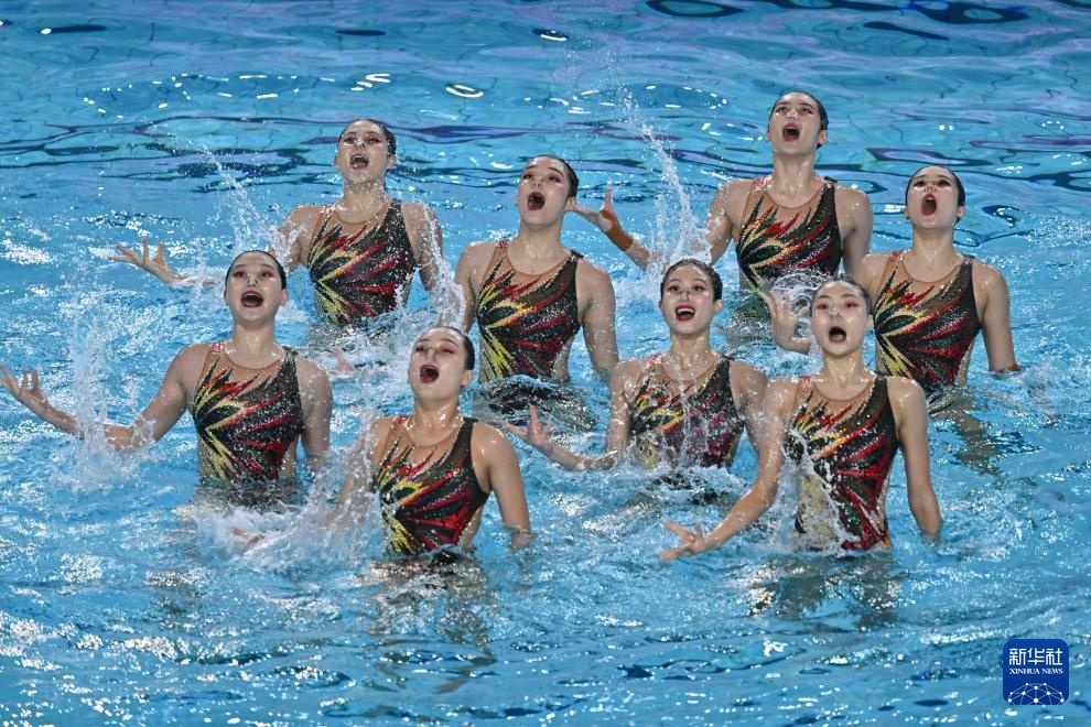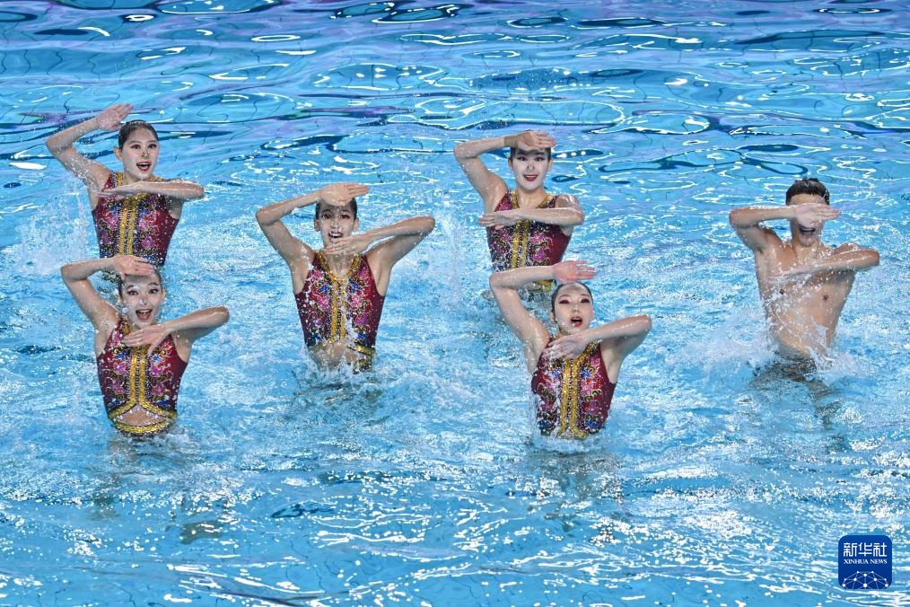 當日,第十五屆全國運動會花樣游泳項目集體技術自選比賽在廣東江門舉行。