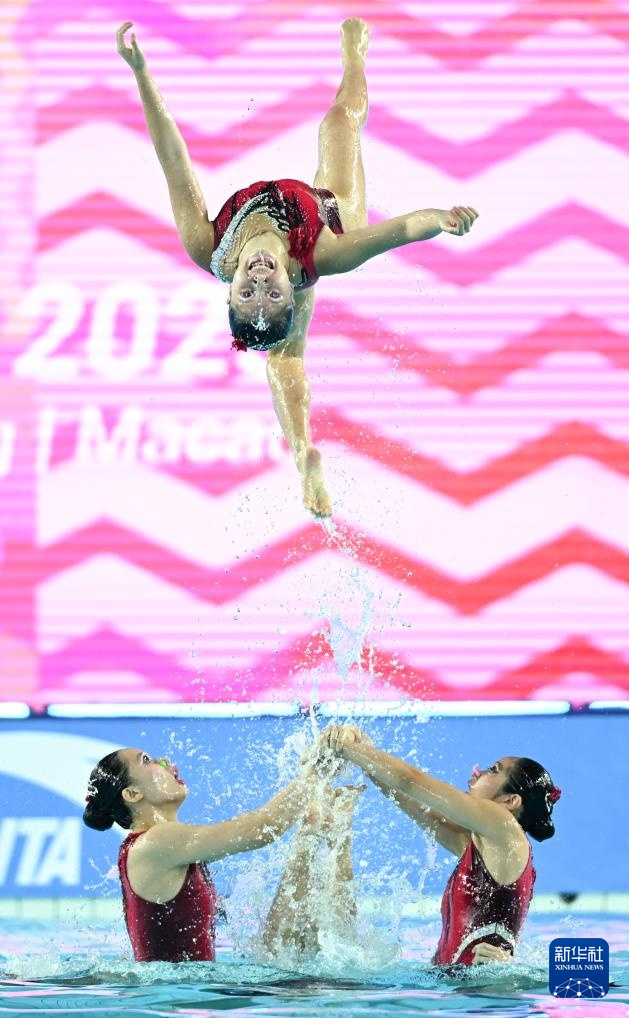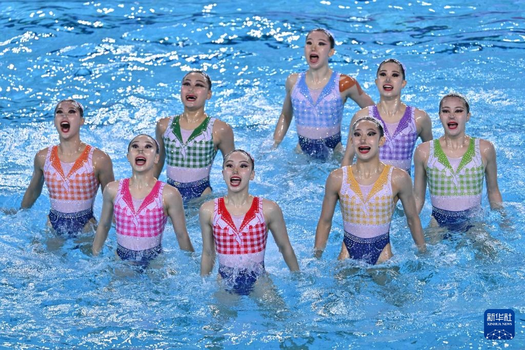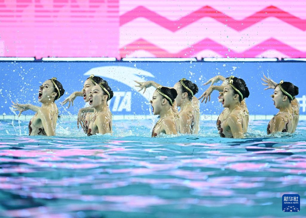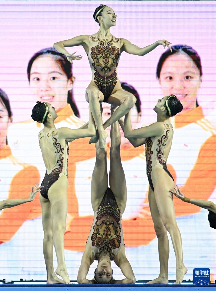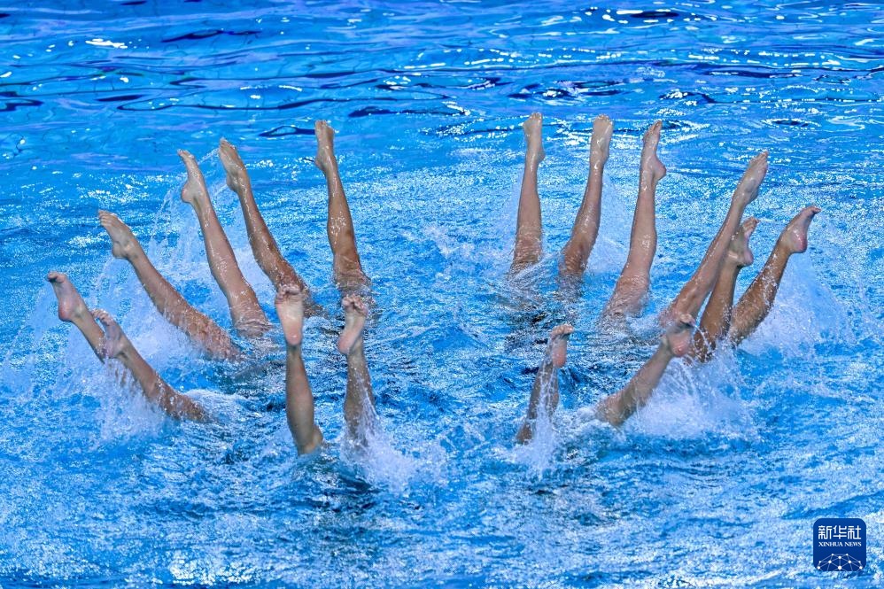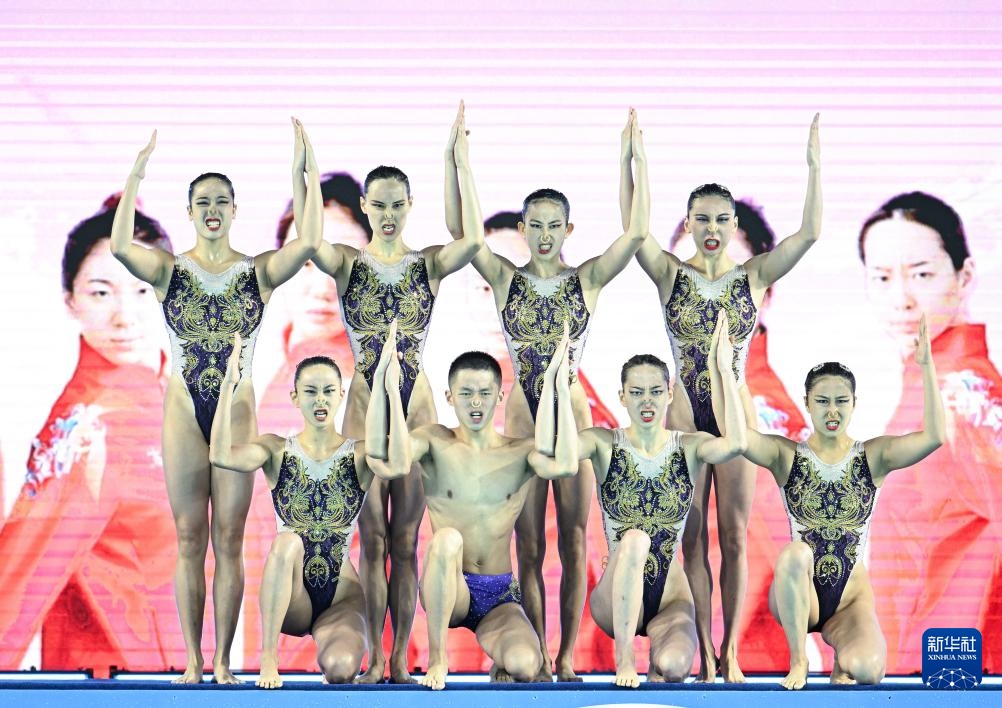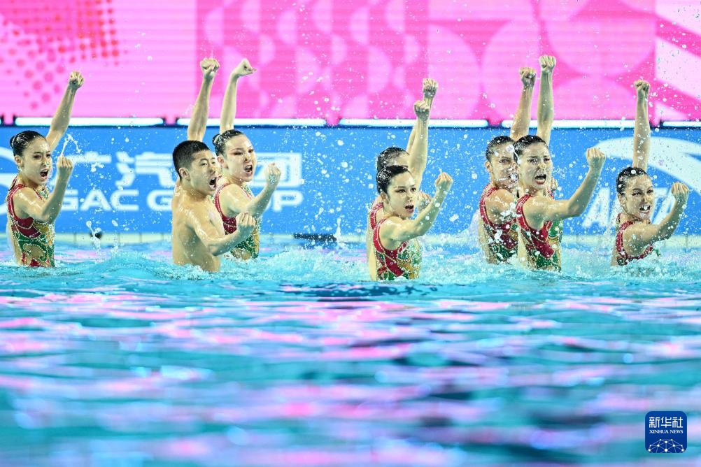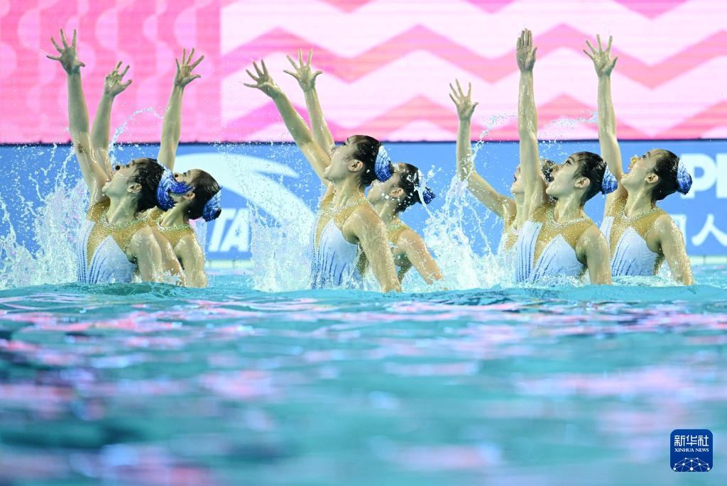 當日,第十五屆全國運動會花樣游泳項目集體技術自選比賽在廣東江門舉行。