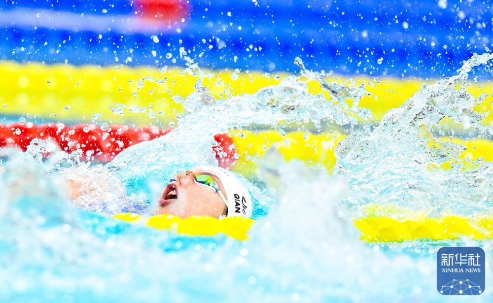 ↑ 浙江隊選手錢心安在女子50米仰泳預賽中。她晉級半決賽。