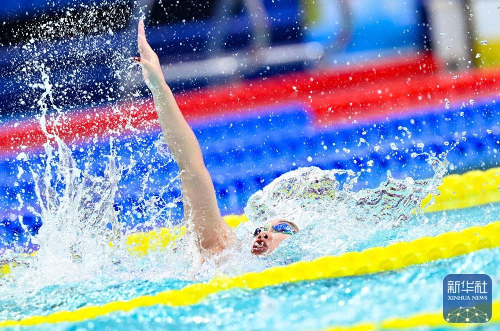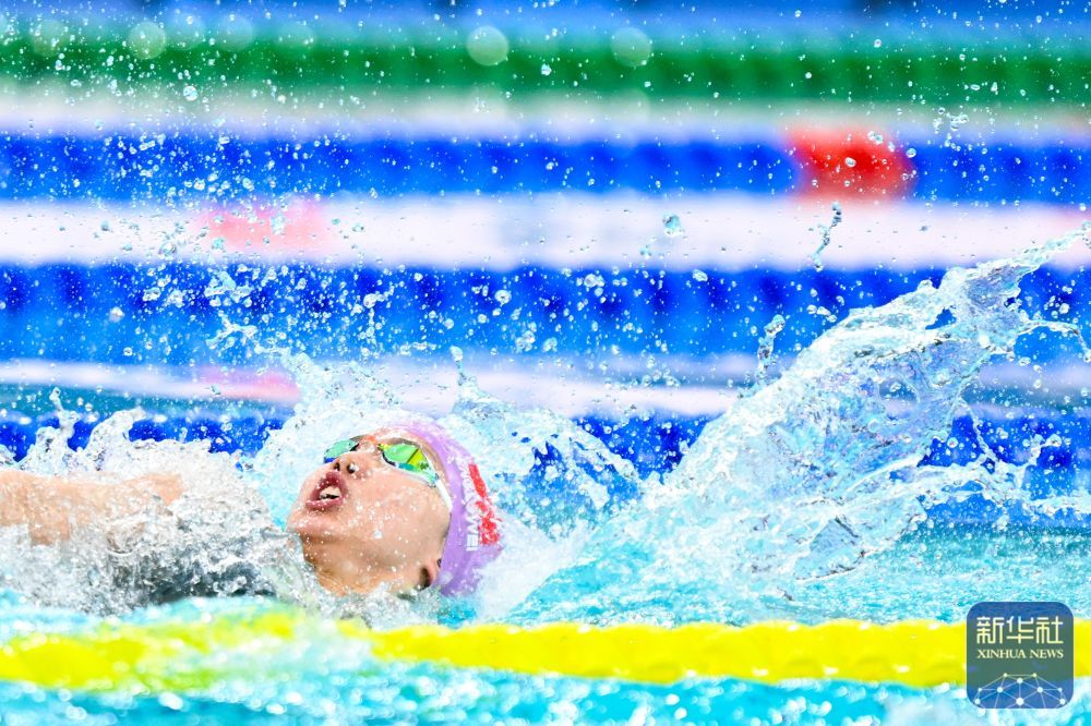 ↑ 湖北隊選手彭旭瑋在女子50米仰泳預賽中。她晉級半決賽。