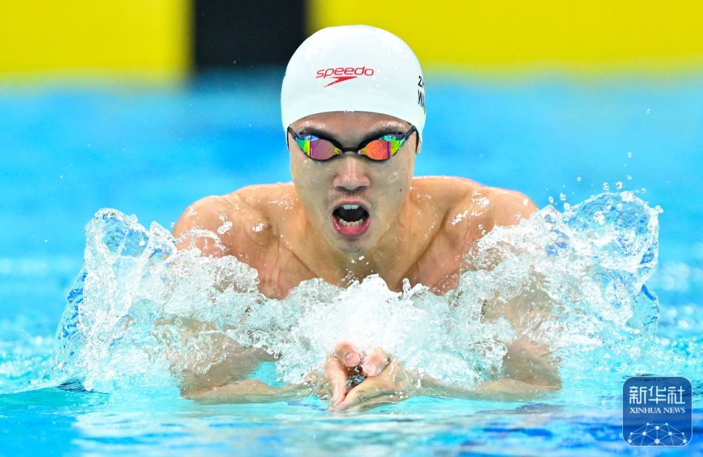 ↑ 浙江隊選手管錚豪在男子200米個人混合泳預賽中。