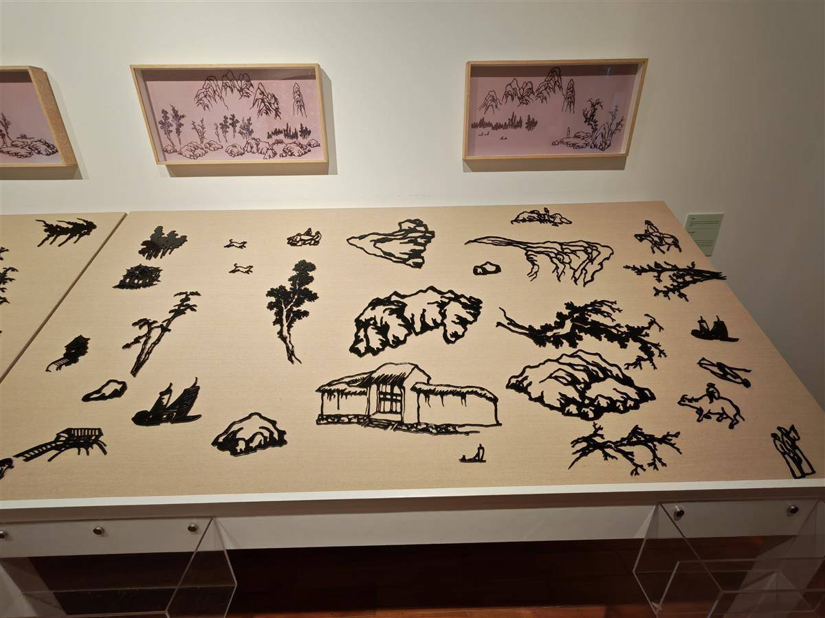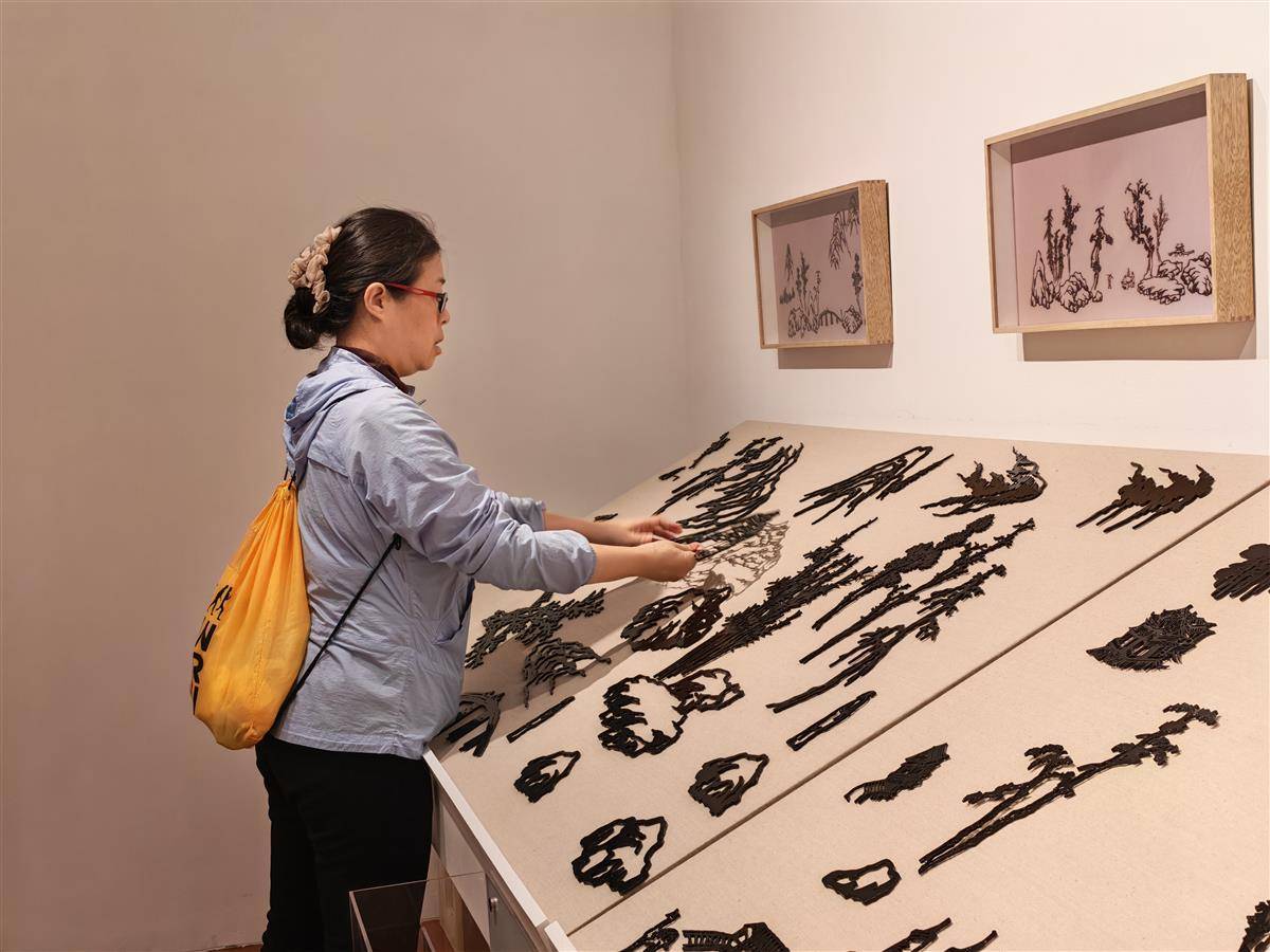 展覽現場還有一件特殊的互動裝置,名為《山水譜》。藝術家李邦耀將中國畫的經典圖式解構,把其中的山、石、樹等基本元素轉化為上百個獨立的金屬部件,觀眾可以在磁性展臺上自由調度這些“模塊”,構建屬于自己的山水圖景,大大增加了普通民眾對于水墨藝術的創作興趣,建立起水墨藝術與普通公眾的文化共鳴。