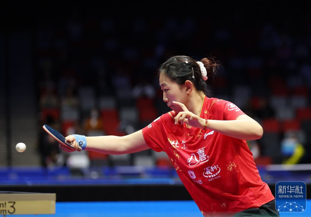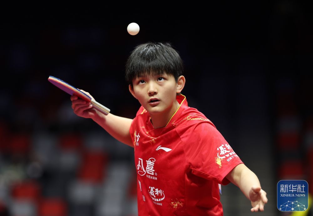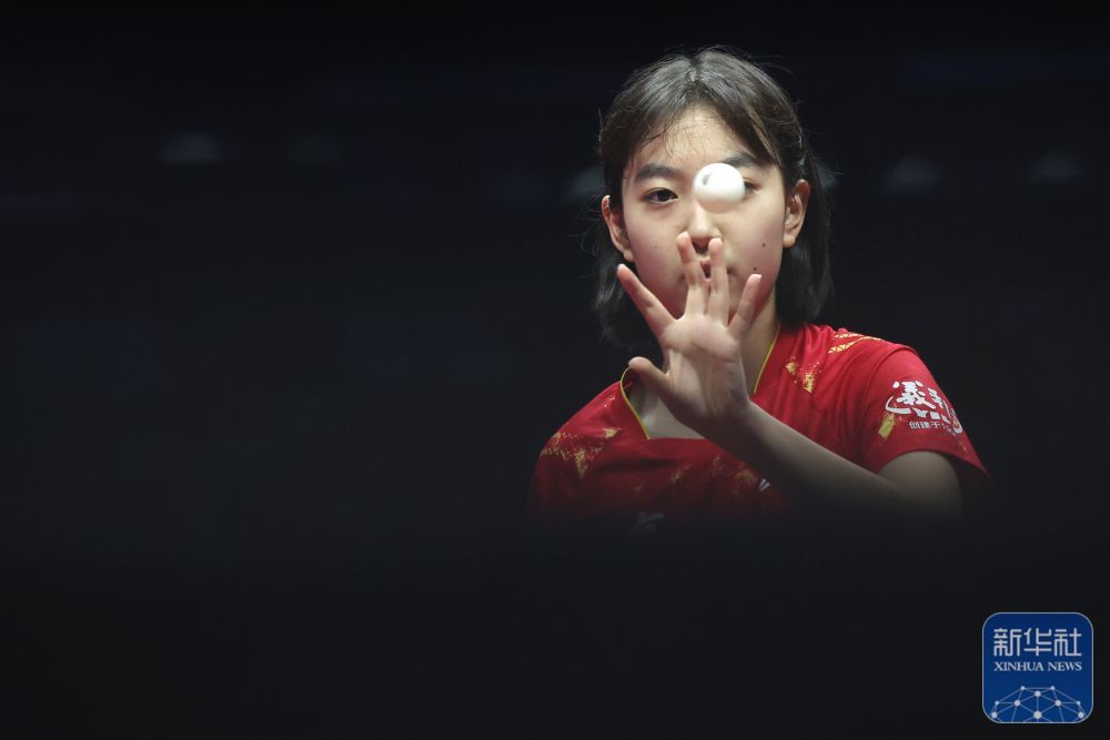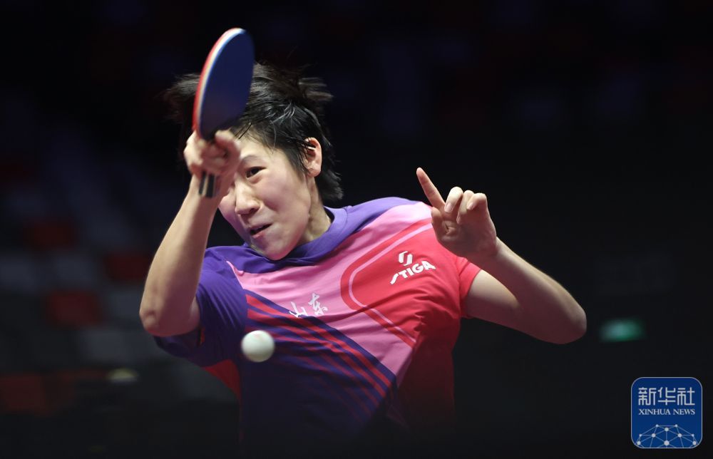 ↑ 山東隊選手丁怡婕在比賽中。她在單打比賽中0比3不敵北京隊選手祝啟慧。 新華社記者 陳斌 攝