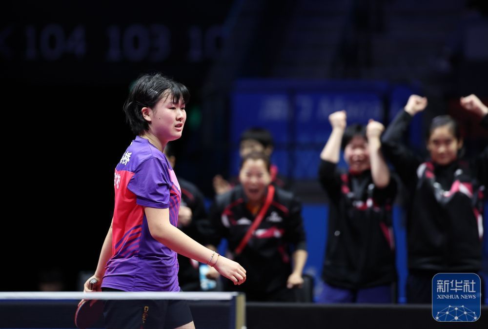 ↑ 山東隊選手姜依依在比賽后慶祝。她在單打比賽中3比0戰勝北京隊選手劉昕冉。 新華社記者 梁旭 攝