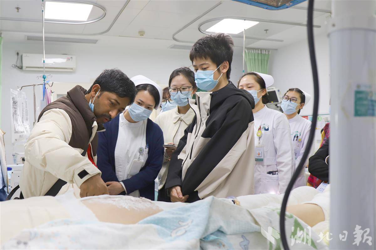 孟方醫(yī)生觀摩武漢市第三醫(yī)院燒傷科BICU。(通訊員 汪崢 攝)